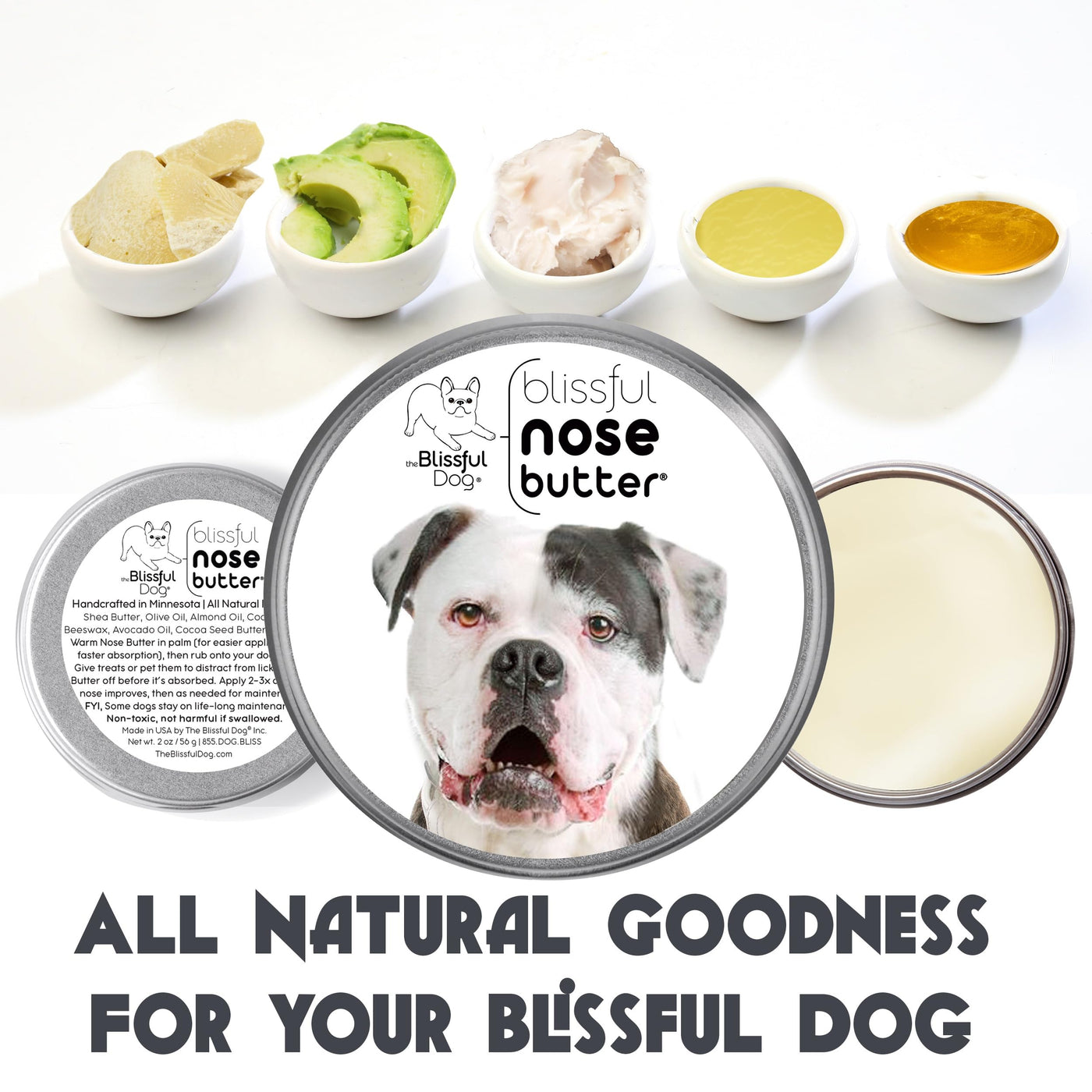 Many dogs have a tendency toward a dry, crusty nose condition, frequently called nasal hyperkeratosis. While any dog can have this condition, some breeds have even more of a predisposition toward dry noses; French Bulldogs, Boxers, Pugs, Bulldogs, most Bully types, Mastiff breeds and their mixes. Nose Butter was developed specifically for this condition. Nose Butter moisturizes rough, dry crusty dog noses. All natural, rich moisturizers soften and smooth your dogs dry, crusty, cracked nose and works like a healing balm. Nose Butter is individually handcrafted in far northern Minnesota (yes, it is science fiction cold in the winter) using all natural and organic good stuff: shea butter, olive oil, castor oil, avocado oil, almond oil, coconut oil, beeswax and cocoa seed butter. Available in Unscented and Lightly Scented with Cedarwood, Cypress and Ylang Ylang. NOSE BUTTER USAGE: DAB a bit onto your dogs nose 1-3x a day for 2-3 days (until nose improves) and then as needed for maintenance (usually1-2x a week). DISTRACT with a treat (keeps them from licking NOSE BUTTER off while it moisturizes). DONE! Complete directions, tips, hints and dog nose info is available on product details pages.