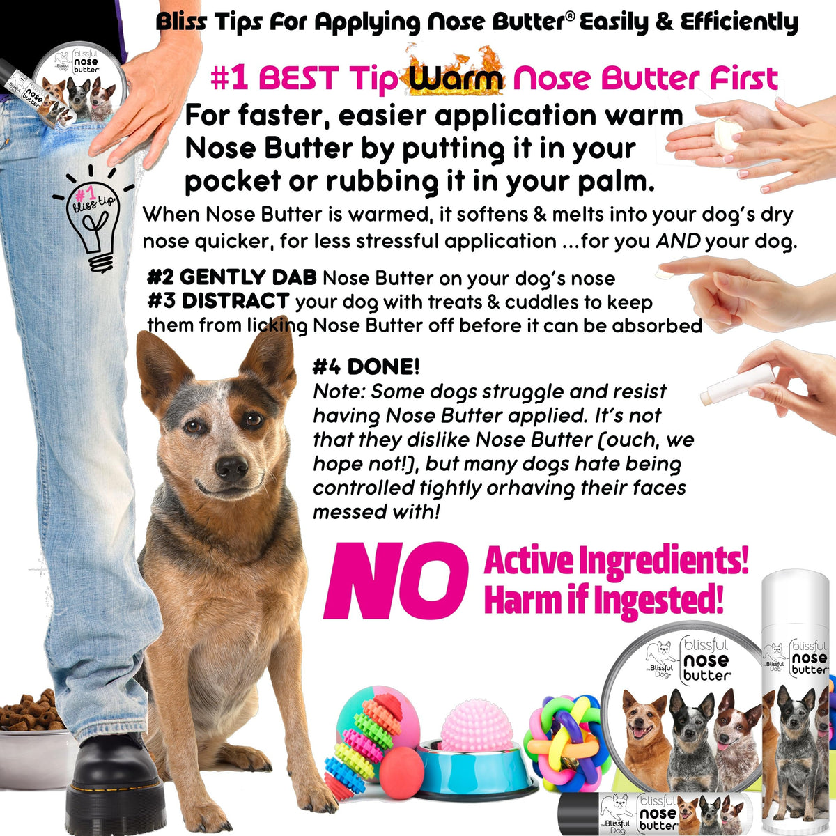 Many dogs have a tendency toward a dry, crusty nose condition, frequently called nasal hyperkeratosis. While any dog can have this condition, some breeds have even more of a predisposition toward dry noses; French Bulldogs, Boxers, Pugs, Bulldogs, most Bully types, Mastiff breeds and their mixes. Nose Butter was developed specifically for this condition. Nose Butter moisturizes rough, dry crusty dog noses. All natural, rich moisturizers soften and smooth your dogs dry, crusty, cracked nose and works like a healing balm. Nose Butter is individually handcrafted in far northern Minnesota (yes, it is science fiction cold in the winter) using all natural and organic good stuff: shea butter, olive oil, castor oil, avocado oil, almond oil, coconut oil, beeswax and cocoa seed butter. Available in Unscented and Lightly Scented with Cedarwood, Cypress and Ylang Ylang. NOSE BUTTER USAGE: DAB a bit onto your dogs nose 1-3x a day for 2-3 days (until nose improves) and then as needed for maintenance (usually1-2x a week). DISTRACT with a treat (keeps them from licking NOSE BUTTER off while it moisturizes). DONE! Complete directions, tips, hints and dog nose info is available on product details pages.