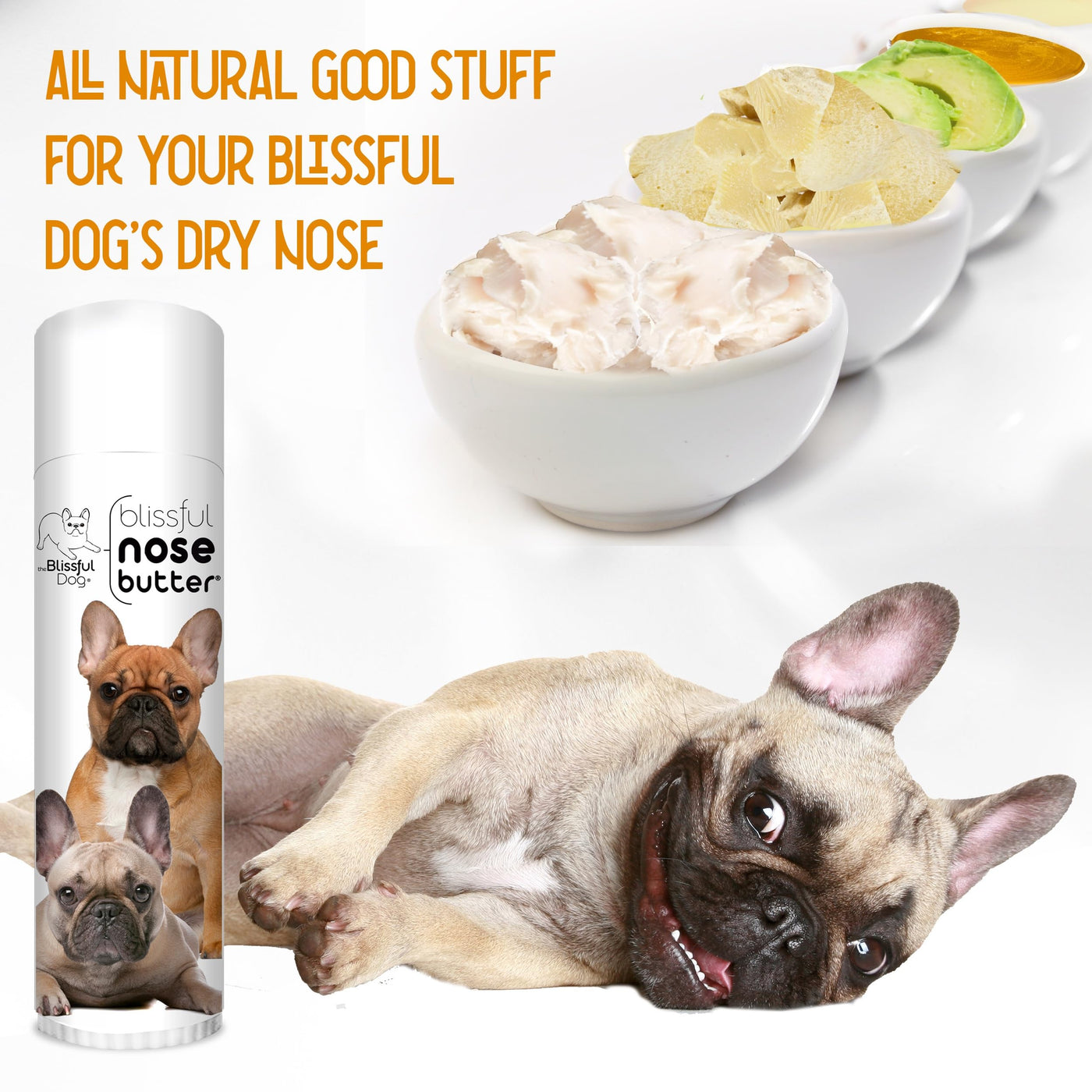French Bulldogs have a predisposition toward having a rough, dry or crusty nose. Your Frenchies dry nose may just have a bit of dryness or a teeny bit of crust or it may be covered in layers of crusty, barnacle looking crud. This extreme dryness may be Nasal Hyperkeratosis. Dont despair, NOSE BUTTER for French Bulldogs will have your Frenchies nose back in shape in days! NOSE BUTTER is individually handcrafted in far northern Minnesota (yes, it is science fiction cold in the winter) using all natural good stuff: shea butter, olive oil, castor oil, avocado oil, almond oil, coconut oil, beeswax, cocoa seed butter and love. NOSE BUTTER USAGE: DAB a bit onto your dogs nose 1-3x a day for 2-3 days (until nose improves) and then as needed for maintenance (usually1-2x a week). DISTRACT with a treat (keeps them from licking NOSE BUTTER off while it moisturizes)