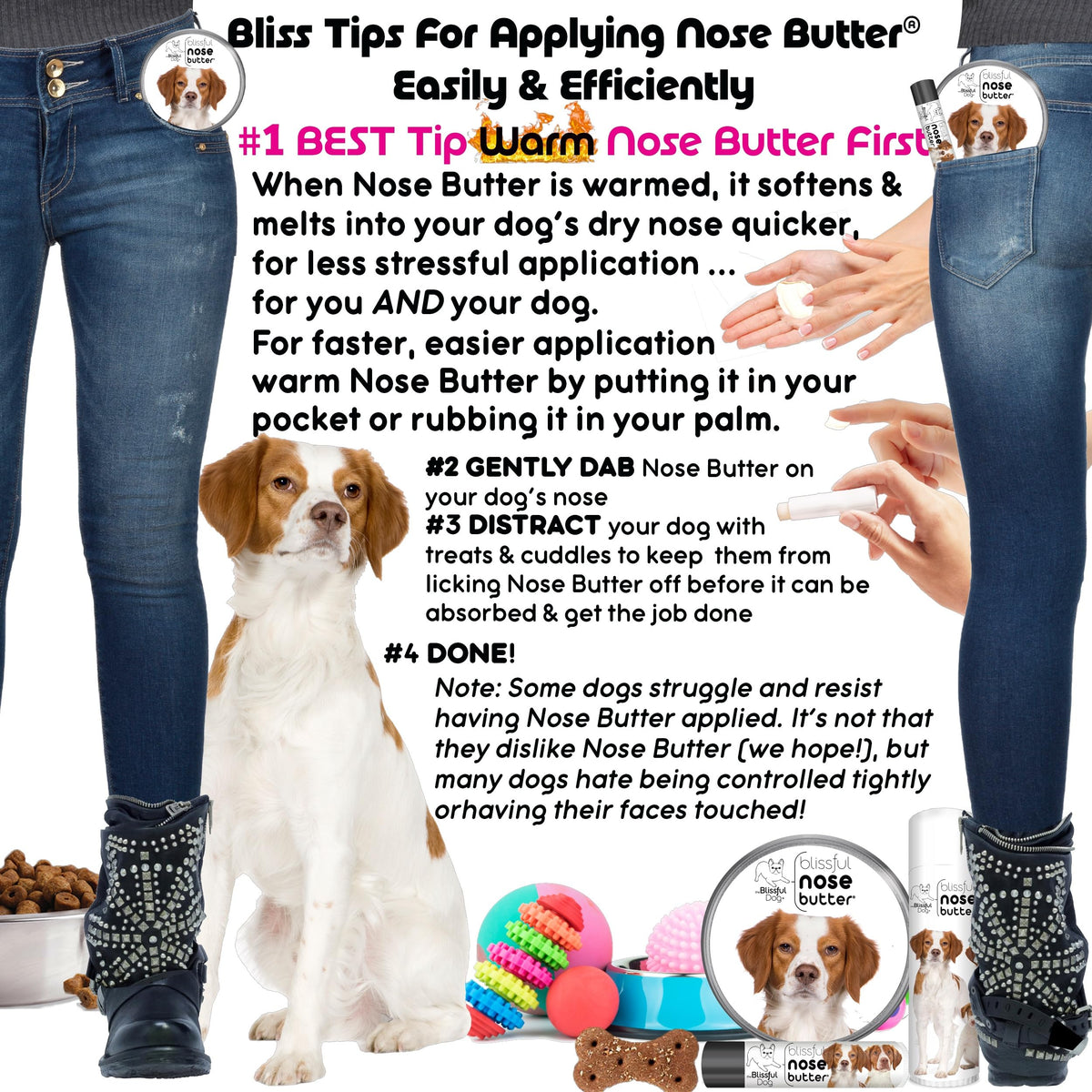 Many dogs have a tendency toward a dry, crusty nose condition, frequently called nasal hyperkeratosis. Nose butter was developed specifically for this condition. Nose butter for dry or crusty dog noses. All natural, rich moisturizers soften and smooth your dogs dry, crusty, cracked nose. Nose butter is individually handcrafted in far northern Minnesota (yes, it is science fiction cold in the winter) using all natural good stuff: shea butter, olive oil, castor oil, avocado oil, almond oil, coconut oil, beeswax, cocoa seed butter, a dash of essential oils and love. Nose butter USAGE: DAB a bit onto your dogs nose 1-3x a day for 2-3 days (until nose improves) and then as needed for maintenance (usually1-2x a week). DISTRACT with a treat (keeps them from licking nose butter off while it moisturizes)