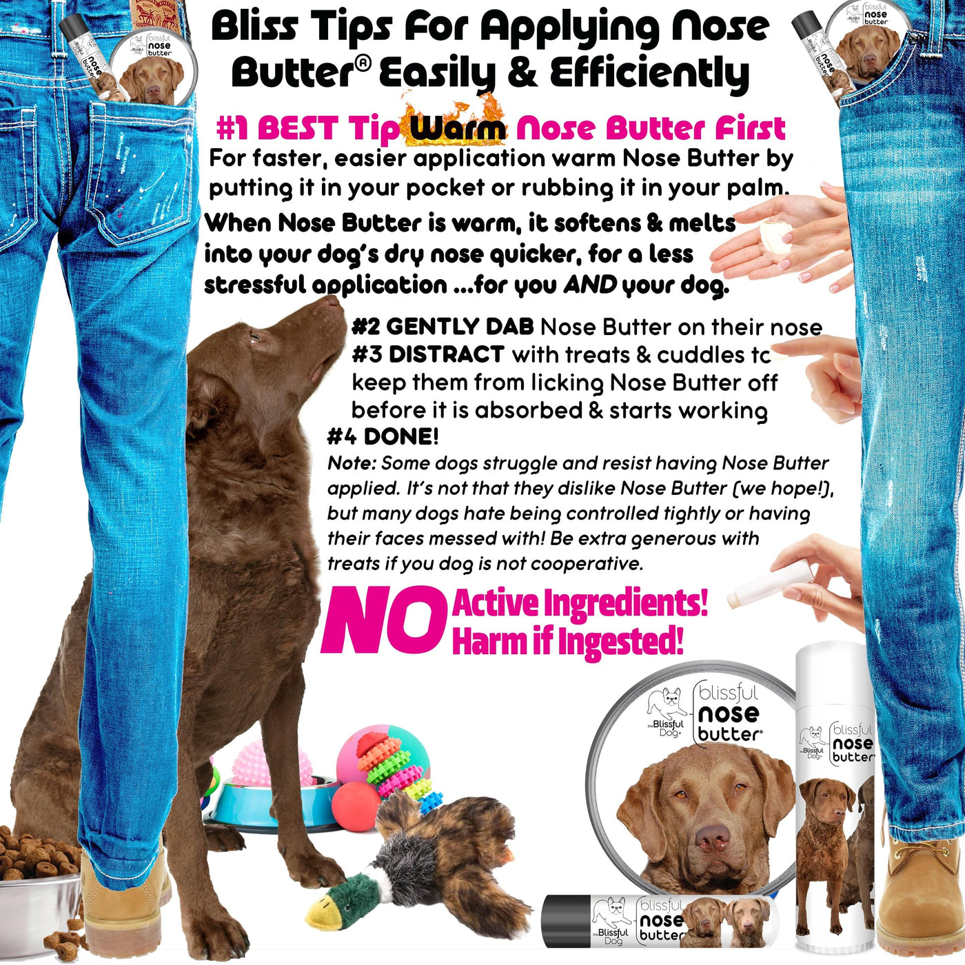 Many dogs have a tendency toward a dry, crusty nose condition, frequently called nasal hyperkeratosis. Nose butter was developed specifically for this condition. Nose butter for dry or crusty dog noses. All natural, rich moisturizers soften and smooth your dogs dry, crusty, cracked nose. Nose butter is individually handcrafted in far northern Minnesota (yes, it is science fiction cold in the winter) using all natural good stuff: shear butter, olive oil, castor oil, avocado oil, almond oil, coconut oil, beeswax, cocoa seed butter and love. Nose butter USAGE: DAB a bit onto your dogs nose 1-3x a day for 2-3 days (until nose improves) and then as needed for maintenance (usually1-2x a week). DISTRACT with a treat (keeps them from licking nose butter off while it moisturizes).