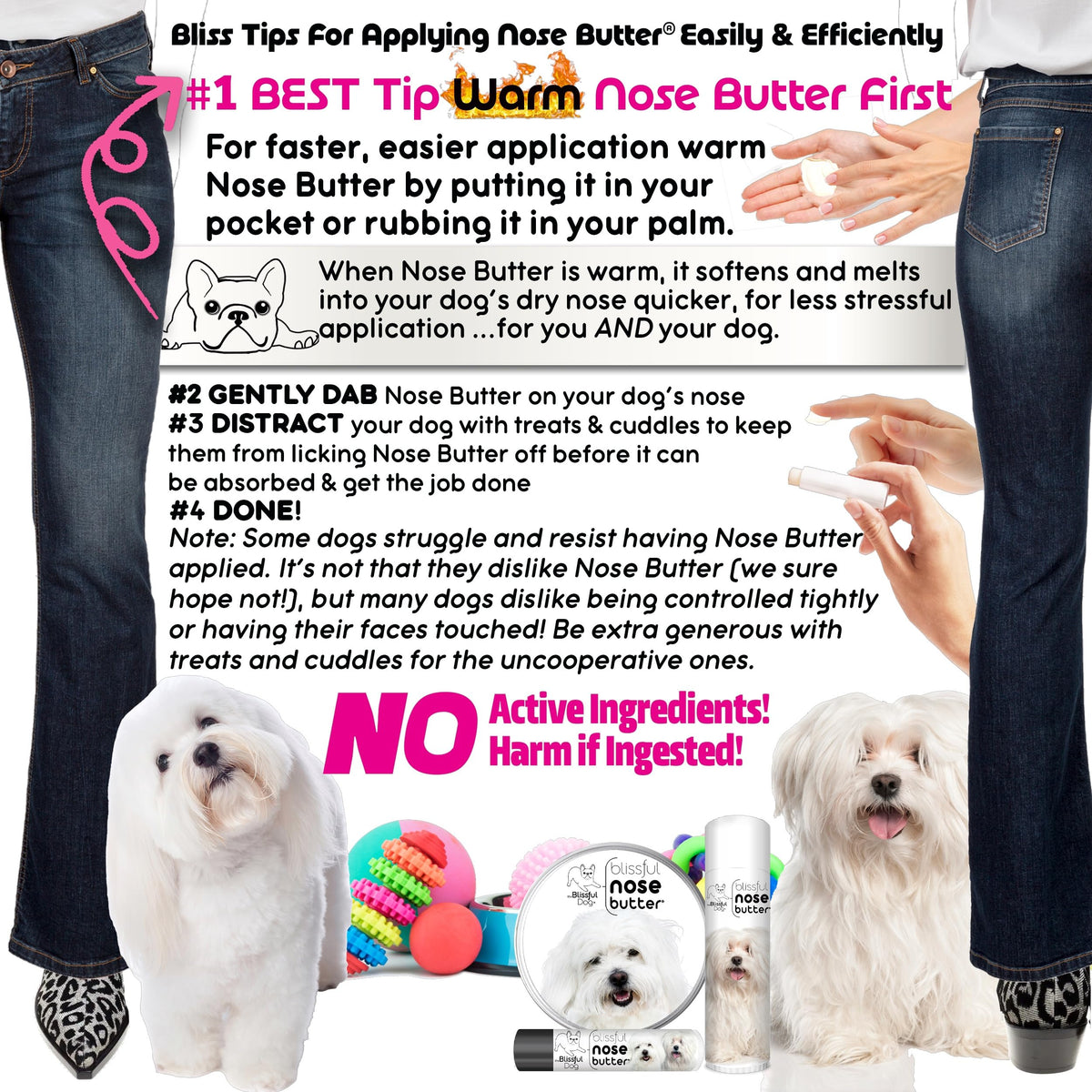 Many dogs have a tendency toward a dry, crusty nose condition, frequently called nasal hyperkeratosis. Nose butter was developed specifically for this condition. Nose butter for dry or crusty dog noses. All natural, rich moisturizers soften and smooth your dogs dry, crusty, cracked nose. Nose butter is individually handcrafted in far northern Minnesota (yes, it is science fiction cold in the winter) using all natural good stuff: shear butter, olive oil, castor oil, avocado oil, almond oil, coconut oil, beeswax, cocoa seed butter and love. Nose butter USAGE: DAB a bit onto your dogs nose 1-3x a day for 2-3 days (until nose improves) and then as needed for maintenance (usually1-2x a week). DISTRACT with a treat (keeps them from licking nose butter off while it moisturizes).