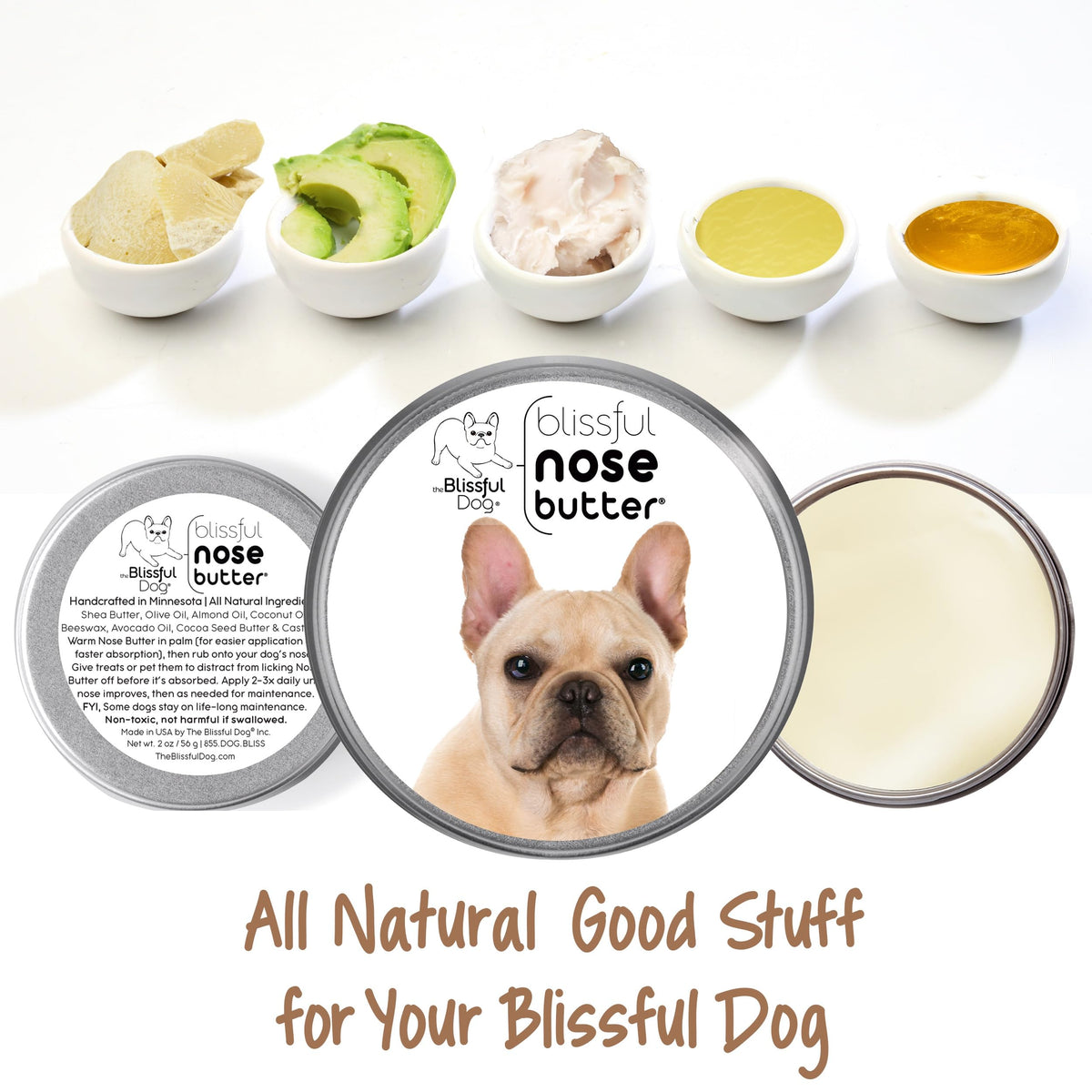 Many dogs have a tendency toward a dry, crusty nose condition, frequently called nasal hyperkeratosis. While any dog can have this condition, some breeds have even more of a predisposition toward dry noses; French Bulldogs, Boxers, Pugs, Bulldogs, most Bully types, Mastiff breeds and their mixes. Nose Butter was developed specifically for this condition. Nose Butter moisturizes rough, dry crusty dog noses. All natural, rich moisturizers soften and smooth your dogs dry, crusty, cracked nose and works like a healing balm. Nose Butter is individually handcrafted in far northern Minnesota (yes, it is science fiction cold in the winter) using all natural and organic good stuff: shea butter, olive oil, castor oil, avocado oil, almond oil, coconut oil, beeswax and cocoa seed butter. Available in Unscented and Lightly Scented with Cedarwood, Cypress and Ylang Ylang. NOSE BUTTER USAGE: DAB a bit onto your dogs nose 1-3x a day for 2-3 days (until nose improves) and then as needed for maintenance (usually1-2x a week). DISTRACT with a treat (keeps them from licking NOSE BUTTER off while it moisturizes). DONE! Complete directions, tips, hints and dog nose info is available on product details pages.