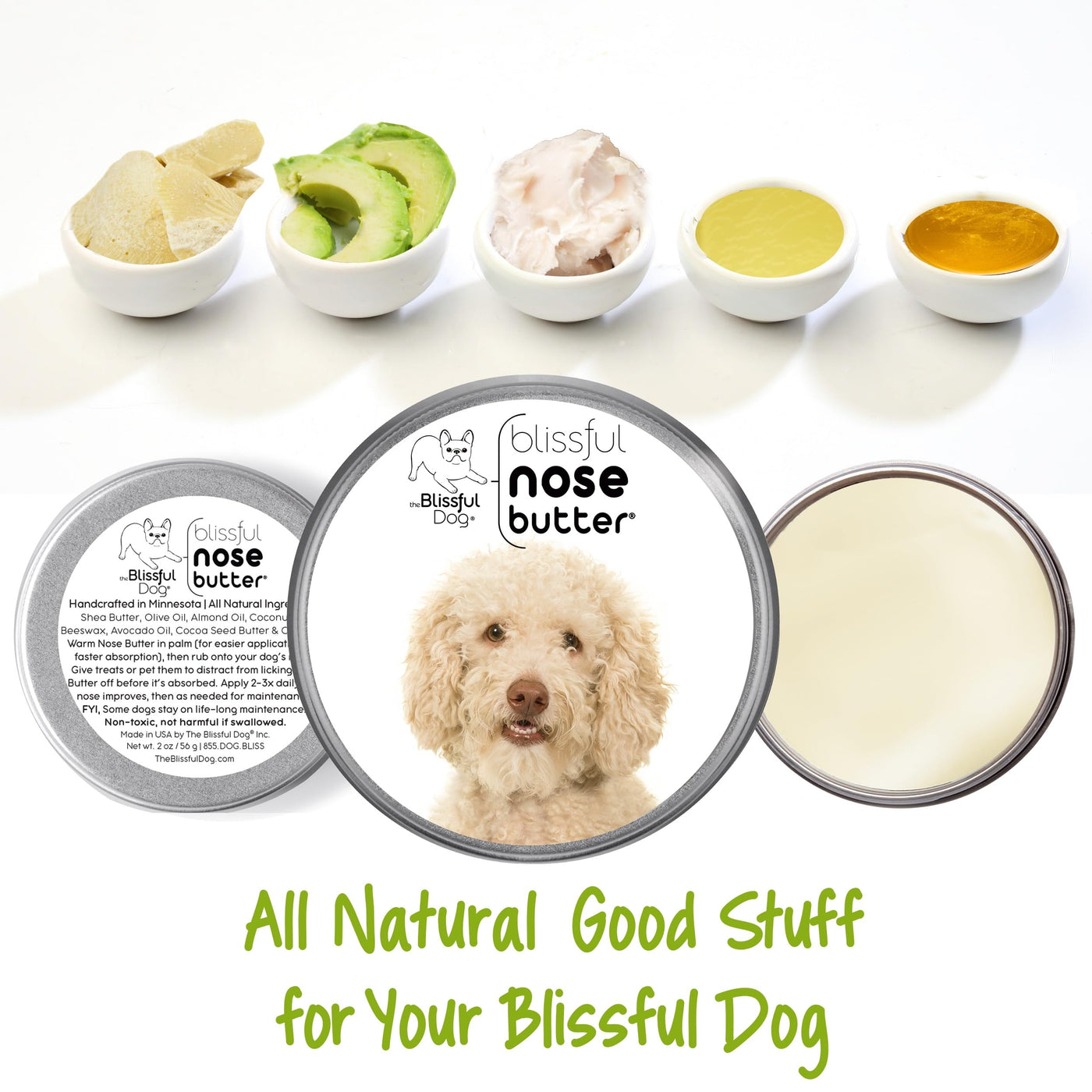 Many dogs have a tendency toward a dry, crusty nose condition, frequently called nasal hyperkeratosis. While any dog can have this condition, some breeds have even more of a predisposition toward dry noses; French Bulldogs, Boxers, Pugs, Bulldogs, most Bully types, Mastiff breeds and their mixes. Nose Butter was developed specifically for this condition. Nose Butter moisturizes rough, dry crusty dog noses. All natural, rich moisturizers soften and smooth your dogs dry, crusty, cracked nose and works like a healing balm. Nose Butter is individually handcrafted in far northern Minnesota (yes, it is science fiction cold in the winter) using all natural and organic good stuff: shea butter, olive oil, castor oil, avocado oil, almond oil, coconut oil, beeswax and cocoa seed butter. Available in Unscented and Lightly Scented with Cedarwood, Cypress and Ylang Ylang. NOSE BUTTER USAGE: DAB a bit onto your dogs nose 1-3x a day for 2-3 days (until nose improves) and then as needed for maintenance (usually1-2x a week). DISTRACT with a treat (keeps them from licking NOSE BUTTER off while it moisturizes). DONE! Complete directions, tips, hints and dog nose info is available on product details pages.