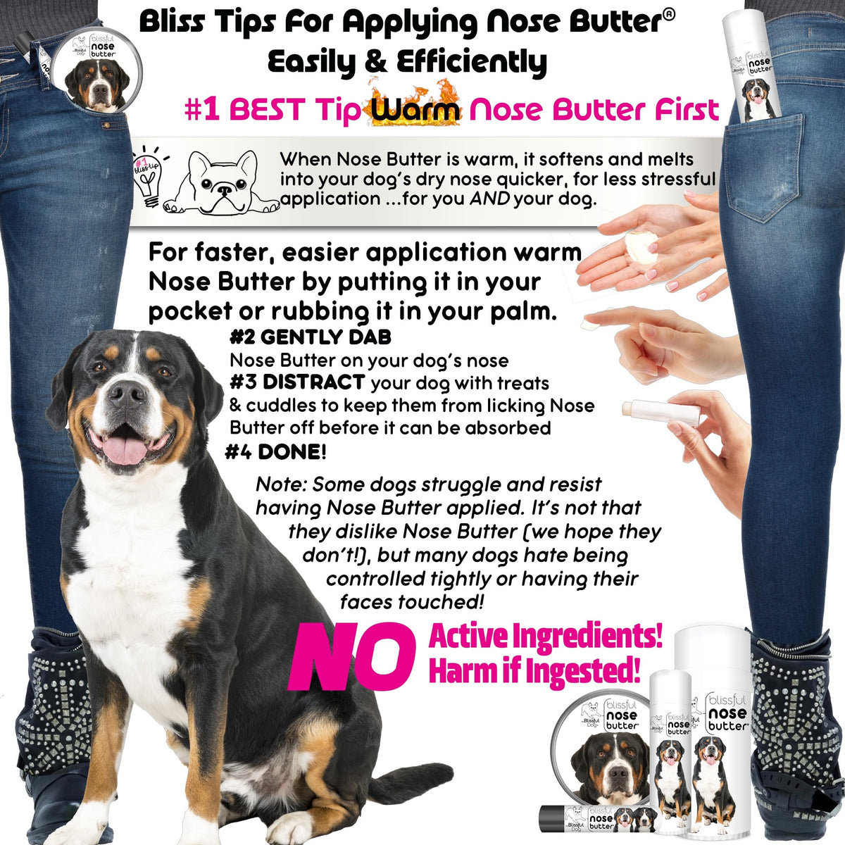 Many dogs have a tendency toward a dry, crusty nose condition, frequently called nasal hyperkeratosis. While any dog can have this condition, some breeds have even more of a predisposition toward dry noses; French Bulldogs, Boxers, Pugs, Bulldogs, most Bully types, Mastiff breeds and their mixes. Nose Butter was developed specifically for this condition. Nose Butter moisturizes rough, dry crusty dog noses. All natural, rich moisturizers soften and smooth your dogs dry, crusty, cracked nose and works like a healing balm. Nose Butter is individually handcrafted in far northern Minnesota (yes, it is science fiction cold in the winter) using all natural and organic good stuff: shea butter, olive oil, castor oil, avocado oil, almond oil, coconut oil, beeswax and cocoa seed butter. Available in Unscented and Lightly Scented with Cedarwood, Cypress and Ylang Ylang. NOSE BUTTER USAGE: DAB a bit onto your dogs nose 1-3x a day for 2-3 days (until nose improves) and then as needed for maintenance (usually1-2x a week). DISTRACT with a treat (keeps them from licking NOSE BUTTER off while it moisturizes). DONE! Complete directions, tips, hints and dog nose info is available on product details pages.