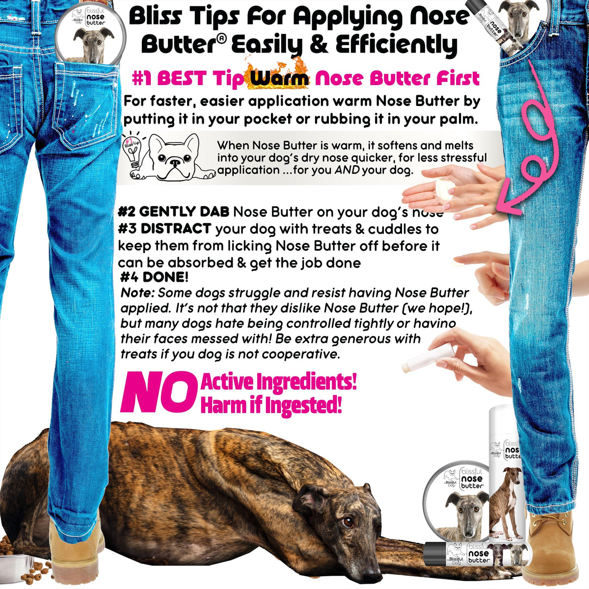 Many dogs have a tendency toward a dry, crusty nose condition, frequently called nasal hyperkeratosis. While any dog can have this condition, some breeds have even more of a predisposition toward dry noses; French Bulldogs, Boxers, Pugs, Bulldogs, most Bully types, Mastiff breeds and their mixes. Nose Butter was developed specifically for this condition. Nose Butter moisturizes rough, dry crusty dog noses. All natural, rich moisturizers soften and smooth your dogs dry, crusty, cracked nose and works like a healing balm. Nose Butter is individually handcrafted in far northern Minnesota (yes, it is science fiction cold in the winter) using all natural and organic good stuff: shea butter, olive oil, castor oil, avocado oil, almond oil, coconut oil, beeswax and cocoa seed butter. Available in Unscented and Lightly Scented with Cedarwood, Cypress and Ylang Ylang. NOSE BUTTER USAGE: DAB a bit onto your dogs nose 1-3x a day for 2-3 days (until nose improves) and then as needed for maintenance (usually1-2x a week). DISTRACT with a treat (keeps them from licking NOSE BUTTER off while it moisturizes). DONE! Complete directions, tips, hints and dog nose info is available on product details pages.
