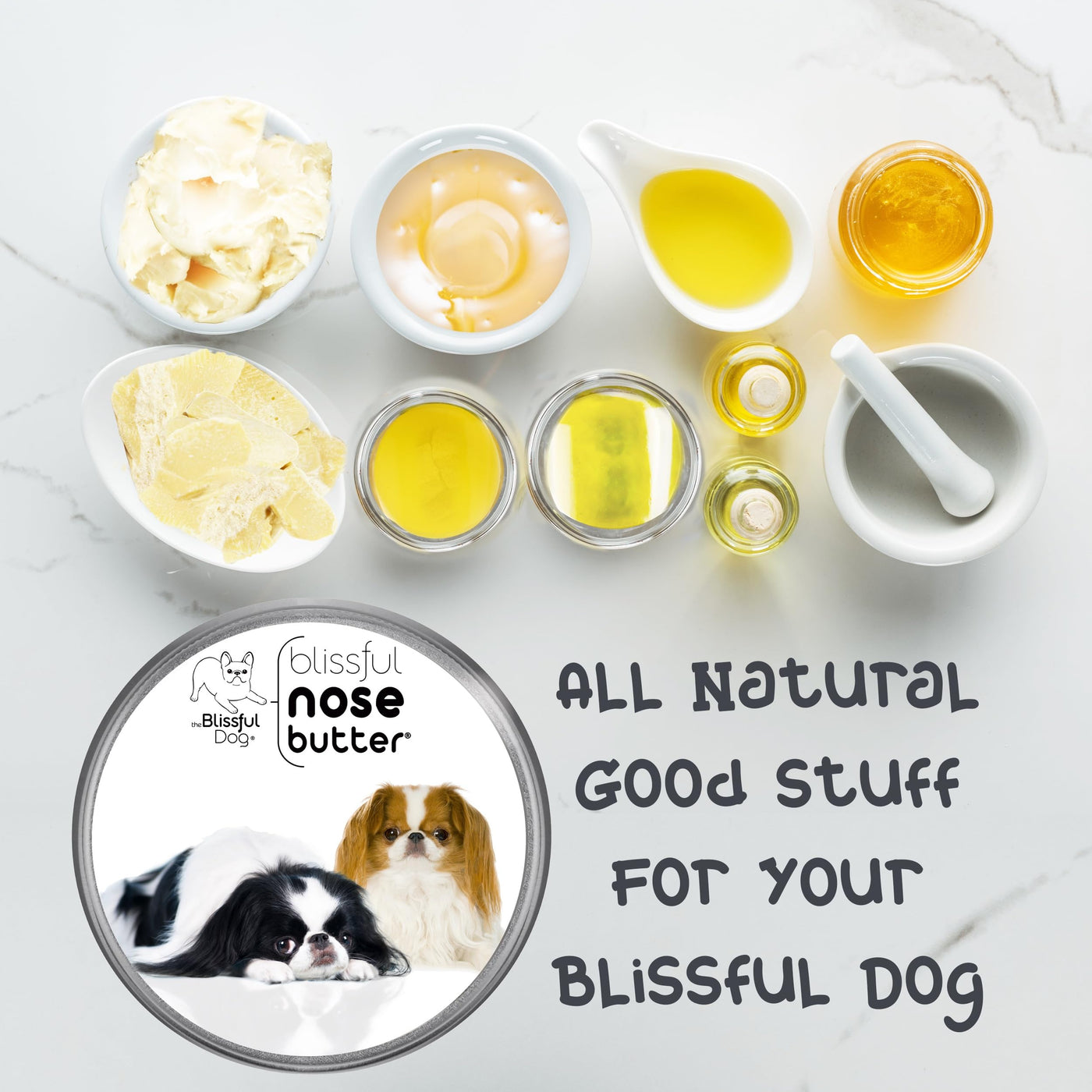 Many dogs have a tendency toward a dry, crusty nose condition, frequently called nasal hyperkeratosis. While any dog can have this condition, some breeds have even more of a predisposition toward dry noses; French Bulldogs, Boxers, Pugs, Bulldogs, most Bully types, Mastiff breeds and their mixes. Nose Butter was developed specifically for this condition. Nose Butter moisturizes rough, dry crusty dog noses. All natural, rich moisturizers soften and smooth your dogs dry, crusty, cracked nose and works like a healing balm. Nose Butter is individually handcrafted in far northern Minnesota (yes, it is science fiction cold in the winter) using all natural and organic good stuff: shea butter, olive oil, castor oil, avocado oil, almond oil, coconut oil, beeswax and cocoa seed butter. Available in Unscented and Lightly Scented with Cedarwood, Cypress and Ylang Ylang. NOSE BUTTER USAGE: DAB a bit onto your dogs nose 1-3x a day for 2-3 days (until nose improves) and then as needed for maintenance (usually1-2x a week). DISTRACT with a treat (keeps them from licking NOSE BUTTER off while it moisturizes). DONE! Complete directions, tips, hints and dog nose info is available on product details pages.