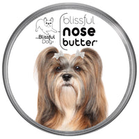 Many dogs have a tendency toward a dry, crusty nose condition, frequently called nasal hyperkeratosis. While any dog can have this condition, some breeds have even more of a predisposition toward dry noses; French Bulldogs, Boxers, Pugs, Bulldogs, most Bully types, Mastiff breeds and their mixes. Nose Butter was developed specifically for this condition. Nose Butter moisturizes rough, dry crusty dog noses. All natural, rich moisturizers soften and smooth your dogs dry, crusty, cracked nose and works like a healing balm. Nose Butter is individually handcrafted in far northern Minnesota (yes, it is science fiction cold in the winter) using all natural and organic good stuff: shea butter, olive oil, castor oil, avocado oil, almond oil, coconut oil, beeswax and cocoa seed butter. Available in Unscented and Lightly Scented with Cedarwood, Cypress and Ylang Ylang. NOSE BUTTER USAGE: DAB a bit onto your dogs nose 1-3x a day for 2-3 days (until nose improves) and then as needed for maintenance (usually1-2x a week). DISTRACT with a treat (keeps them from licking NOSE BUTTER off while it moisturizes). DONE! Complete directions, tips, hints and dog nose info is available on product details pages.
