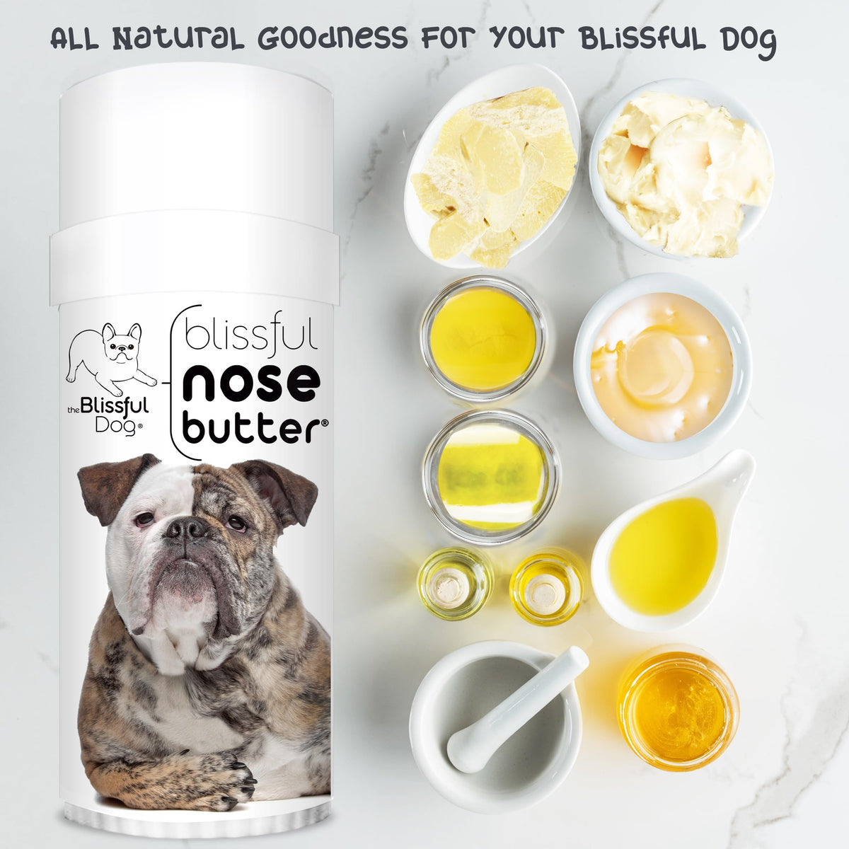 Many dogs have a tendency toward a dry, crusty nose condition, frequently called nasal hyperkeratosis. While any dog can have this condition, some breeds have even more of a predisposition toward dry noses; French Bulldogs, Boxers, Pugs, Bulldogs, most Bully types, Mastiff breeds and their mixes. Nose Butter was developed specifically for this condition. Nose Butter moisturizes rough, dry crusty dog noses. All natural, rich moisturizers soften and smooth your dogs dry, crusty, cracked nose and works like a healing balm. Nose Butter is individually handcrafted in far northern Minnesota (yes, it is science fiction cold in the winter) using all natural and organic good stuff: shea butter, olive oil, castor oil, avocado oil, almond oil, coconut oil, beeswax and cocoa seed butter. Available in Unscented and Lightly Scented with Cedarwood, Cypress and Ylang Ylang. NOSE BUTTER USAGE: DAB a bit onto your dogs nose 1-3x a day for 2-3 days (until nose improves) and then as needed for maintenance (usually1-2x a week). DISTRACT with a treat (keeps them from licking NOSE BUTTER off while it moisturizes). DONE! Complete directions, tips, hints and dog nose info is available on product details pages.