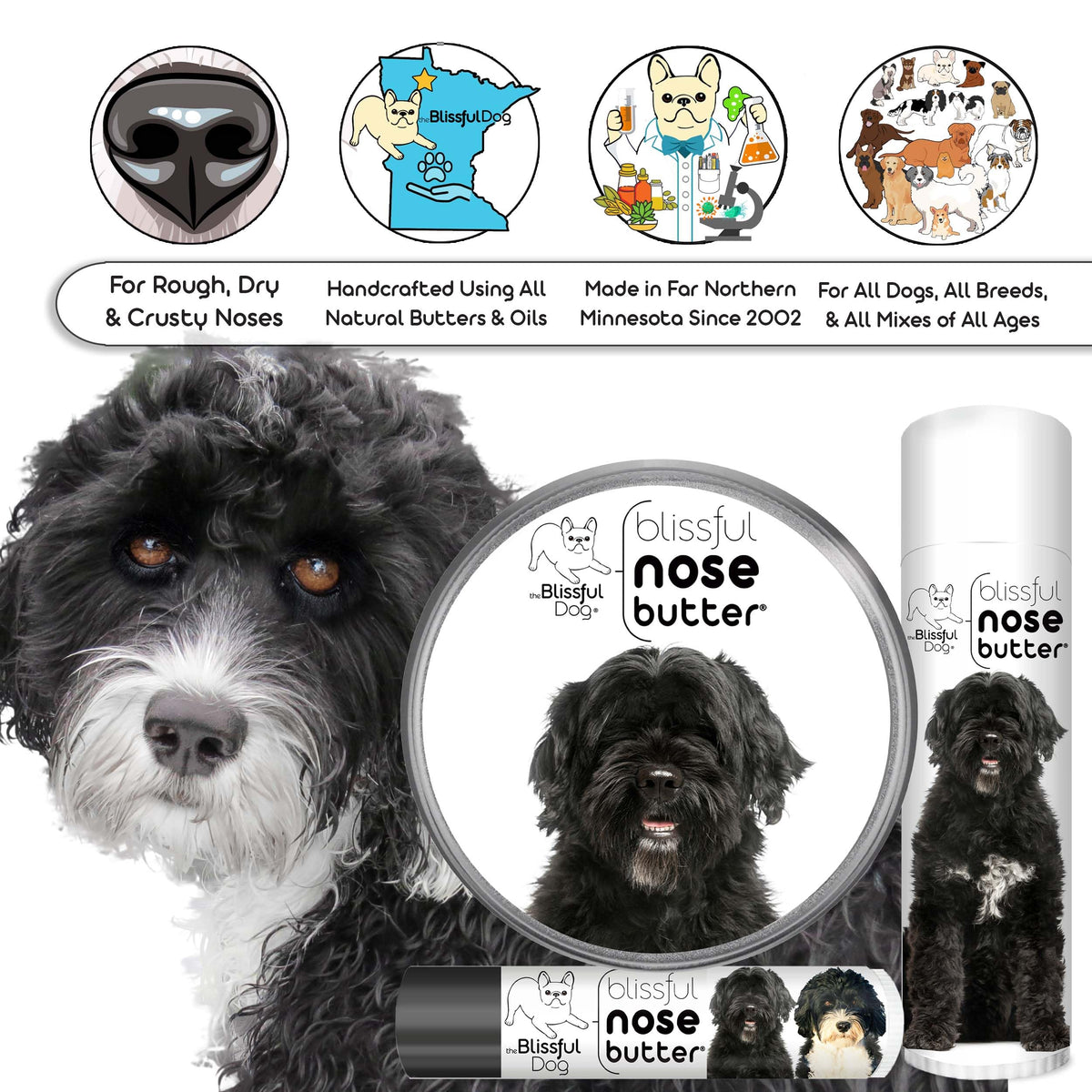 Many dogs have a tendency toward a dry, crusty nose condition, frequently called nasal hyperkeratosis. While any dog can have this condition, some breeds have even more of a predisposition toward dry noses; French Bulldogs, Boxers, Pugs, Bulldogs, most Bully types, Mastiff breeds and their mixes. Nose Butter was developed specifically for this condition. Nose Butter moisturizes rough, dry crusty dog noses. All natural, rich moisturizers soften and smooth your dogs dry, crusty, cracked nose and works like a healing balm. Nose Butter is individually handcrafted in far northern Minnesota (yes, it is science fiction cold in the winter) using all natural and organic good stuff: shea butter, olive oil, castor oil, avocado oil, almond oil, coconut oil, beeswax and cocoa seed butter. Available in Unscented and Lightly Scented with Cedarwood, Cypress and Ylang Ylang. NOSE BUTTER USAGE: DAB a bit onto your dogs nose 1-3x a day for 2-3 days (until nose improves) and then as needed for maintenance (usually1-2x a week). DISTRACT with a treat (keeps them from licking NOSE BUTTER off while it moisturizes). DONE! Complete directions, tips, hints and dog nose info is available on product details pages.