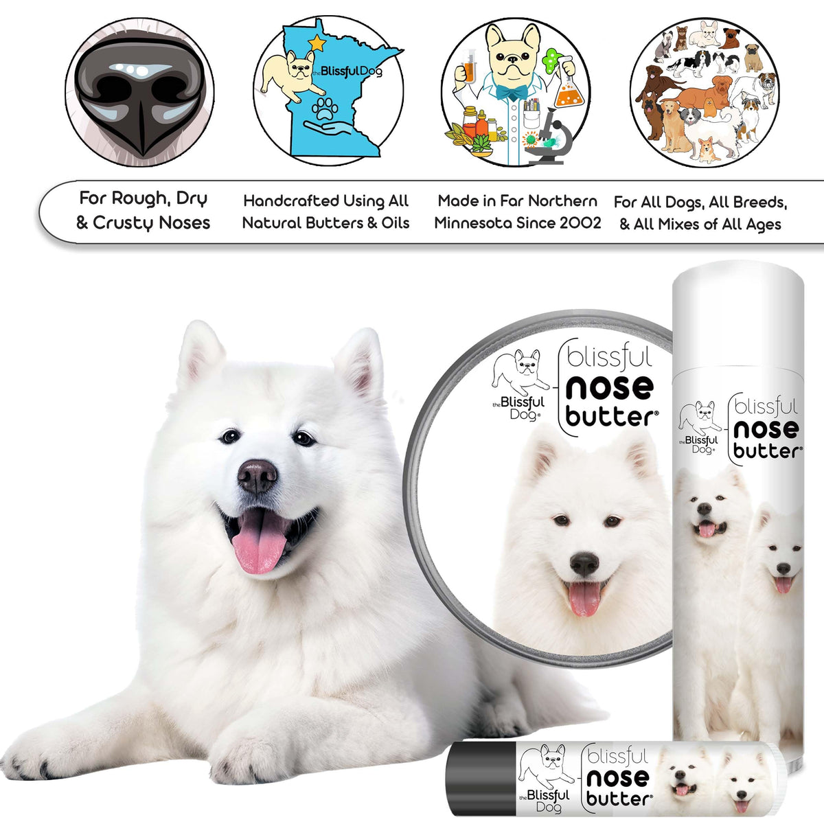 Many dogs have a tendency toward a dry, crusty nose condition, frequently called nasal hyperkeratosis. While any dog can have this condition, some breeds have even more of a predisposition toward dry noses; French Bulldogs, Boxers, Pugs, Bulldogs, most Bully types, Mastiff breeds and their mixes. Nose Butter was developed specifically for this condition. Nose Butter moisturizes rough, dry crusty dog noses. All natural, rich moisturizers soften and smooth your dogs dry, crusty, cracked nose and works like a healing balm. Nose Butter is individually handcrafted in far northern Minnesota (yes, it is science fiction cold in the winter) using all natural and organic good stuff: shea butter, olive oil, castor oil, avocado oil, almond oil, coconut oil, beeswax and cocoa seed butter. Available in Unscented and Lightly Scented with Cedarwood, Cypress and Ylang Ylang. NOSE BUTTER USAGE: DAB a bit onto your dogs nose 1-3x a day for 2-3 days (until nose improves) and then as needed for maintenance (usually1-2x a week). DISTRACT with a treat (keeps them from licking NOSE BUTTER off while it moisturizes). DONE! Complete directions, tips, hints and dog nose info is available on product details pages.