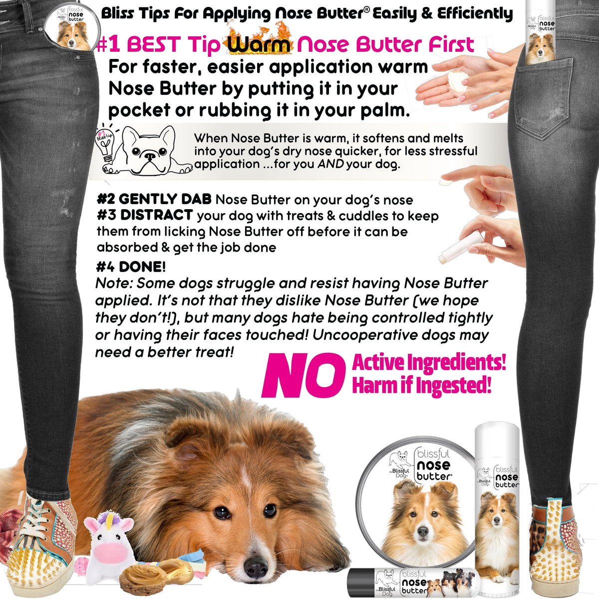 Many dogs have a tendency toward a dry, crusty nose condition, frequently. While any dog can have this condition, some breeds have even more of a predisposition toward dry noses; French Bulldogs, Boxers, Pugs, Bulldogs, most Bully types, Mastiff breeds and their mixes. Nose Butter - Dog Nose Butter was developed specifically for this condition. Nose Butter - Dog Nose Butter moisturizes rough, dry crusty dog noses. All natural, rich moisturizers soften and smooth your dogs dry, crusty, cracked nose and works like a healing balm. Nose Butter - Dog Nose Butter is individually handcrafted in far northern Minnesota (yes, it is science fiction cold in the winter) using all natural and organic good stuff: shea butter, olive oil, castor oil, avocado oil, almond oil, coconut oil, beeswax and cocoa seed butter. Available in Unscented and Lightly Scented with Cedarwood, Cypress and Ylang Ylang. Nose Butter - Dog Nose Butter USAGE: DAB a bit onto your dogs nose 1-3x a day for 2-3 days (until nose improves) and then as needed for maintenance (usually1-2x a week). DISTRACT with a treat (keeps them from licking Nose Butter - Dog Nose Butter off while it moisturizes). DONE! Complete directions, tips, hints and dog nose info is available on product details pages.