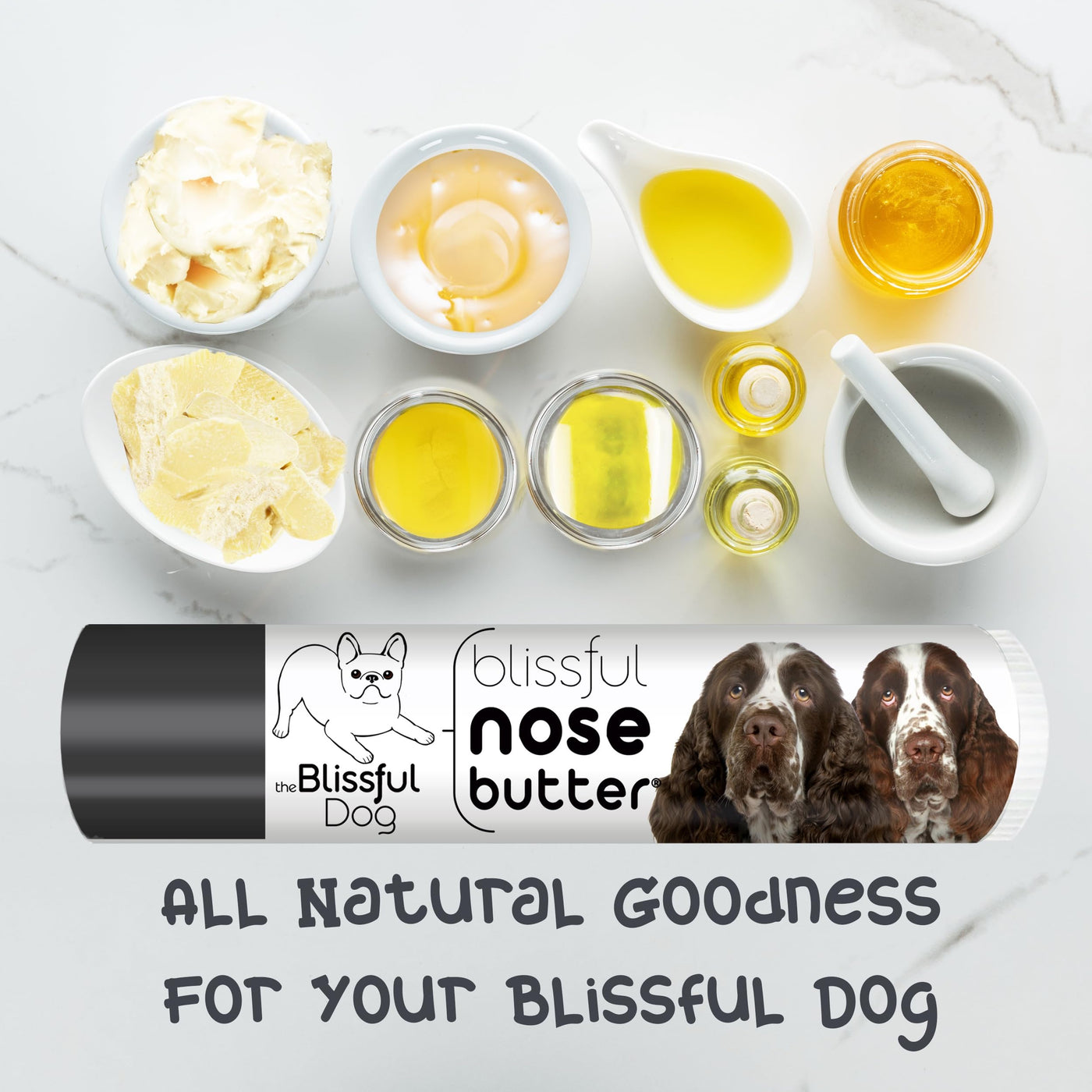 Many dogs have a tendency toward a dry, crusty nose condition, frequently called nasal hyperkeratosis. While any dog can have this condition, some breeds have even more of a predisposition toward dry noses; French Bulldogs, Boxers, Pugs, Bulldogs, most Bully types, Mastiff breeds and their mixes. Nose Butter - Dog Nose Butter was developed specifically for this condition. Nose Butter - Dog Nose Butter moisturizes rough, dry crusty dog noses. All natural, rich moisturizers soften and smooth your dogs dry, crusty, cracked nose and works like a healing balm. Nose Butter - Dog Nose Butter is individually handcrafted in far northern Minnesota (yes, it is science fiction cold in the winter) using all natural and organic good stuff: shea butter, olive oil, castor oil, avocado oil, almond oil, coconut oil, beeswax and cocoa seed butter. Available in Unscented and Lightly Scented with Cedarwood, Cypress and Ylang Ylang. Nose Butter - Dog Nose Butter USAGE: DAB a bit onto your dogs nose 1-3x a day for 2-3 days (until nose improves) and then as needed for maintenance (usually1-2x a week). DISTRACT with a treat (keeps them from licking Nose Butter - Dog Nose Butter off while it moisturizes). DONE! Complete directions, tips, hints and dog nose info is available on product details pages.