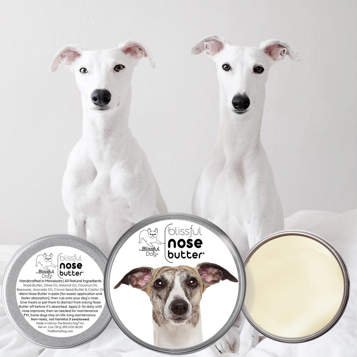 Many dogs have a tendency toward a dry, crusty nose condition, frequently called nasal hyperkeratosis. While any dog can have this condition, some breeds have even more of a predisposition toward dry noses; French Bulldogs, Boxers, Pugs, Bulldogs, most Bully types, Mastiff breeds and their mixes. Nose Butter - Dog Nose Butter was developed specifically for this condition. Nose Butter - Dog Nose Butter moisturizes rough, dry crusty dog noses. All natural, rich moisturizers soften and smooth your dogs dry, crusty, cracked nose and works like a healing balm. Nose Butter - Dog Nose Butter is individually handcrafted in far northern Minnesota (yes, it is science fiction cold in the winter) using all natural and organic good stuff: shea butter, olive oil, castor oil, avocado oil, almond oil, coconut oil, beeswax and cocoa seed butter. Available in Unscented and Lightly Scented with Cedarwood, Cypress and Ylang Ylang. Nose Butter - Dog Nose Butter USAGE: DAB a bit onto your dogs nose 1-3x a day for 2-3 days (until nose improves) and then as needed for maintenance (usually1-2x a week). DISTRACT with a treat (keeps them from licking Nose Butter - Dog Nose Butter off while it moisturizes). DONE! Complete directions, tips, hints and dog nose info is available on product details pages.