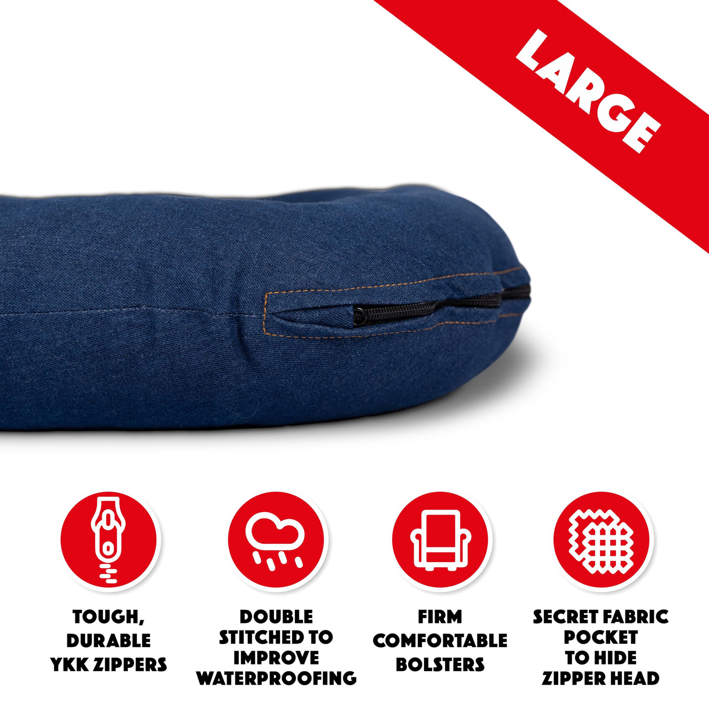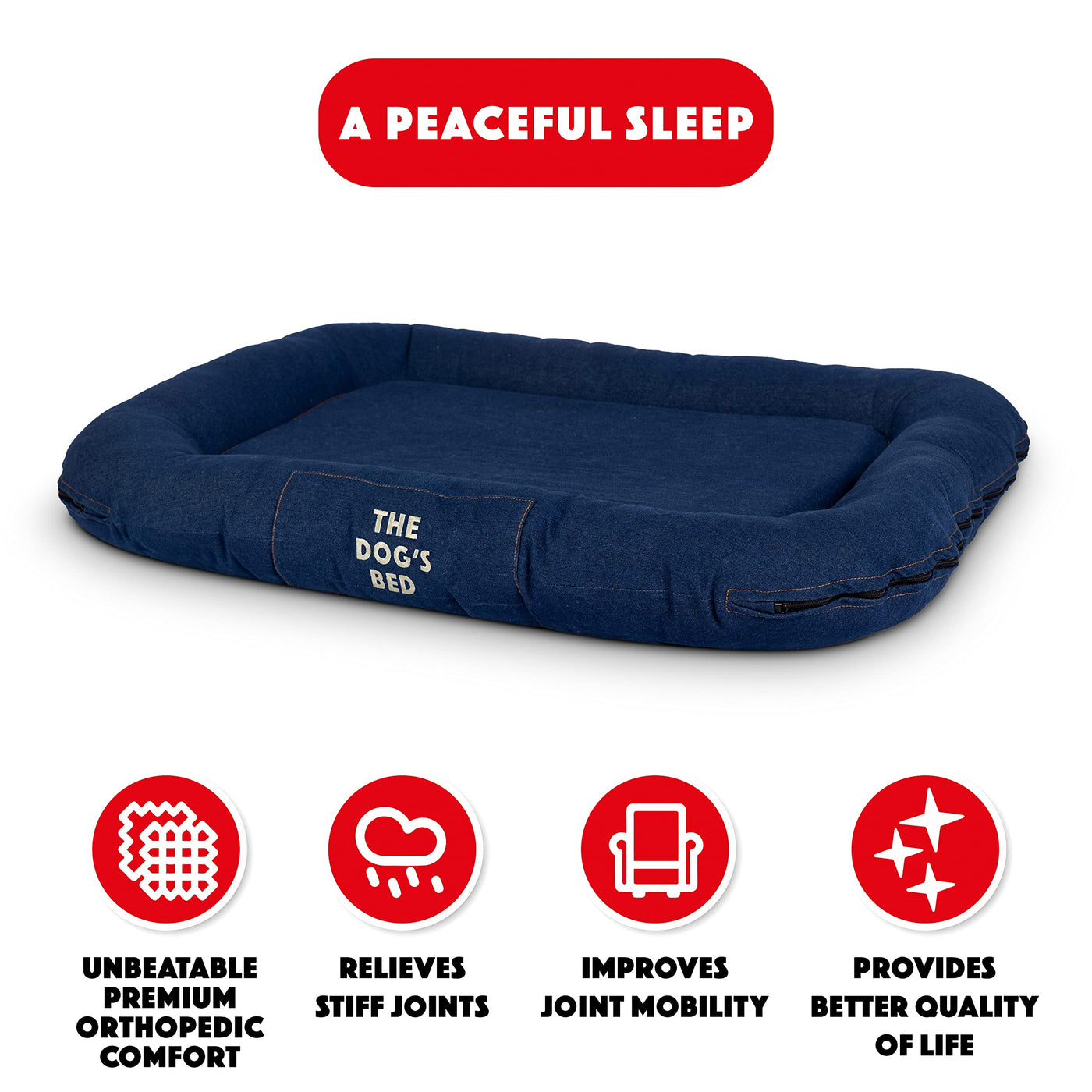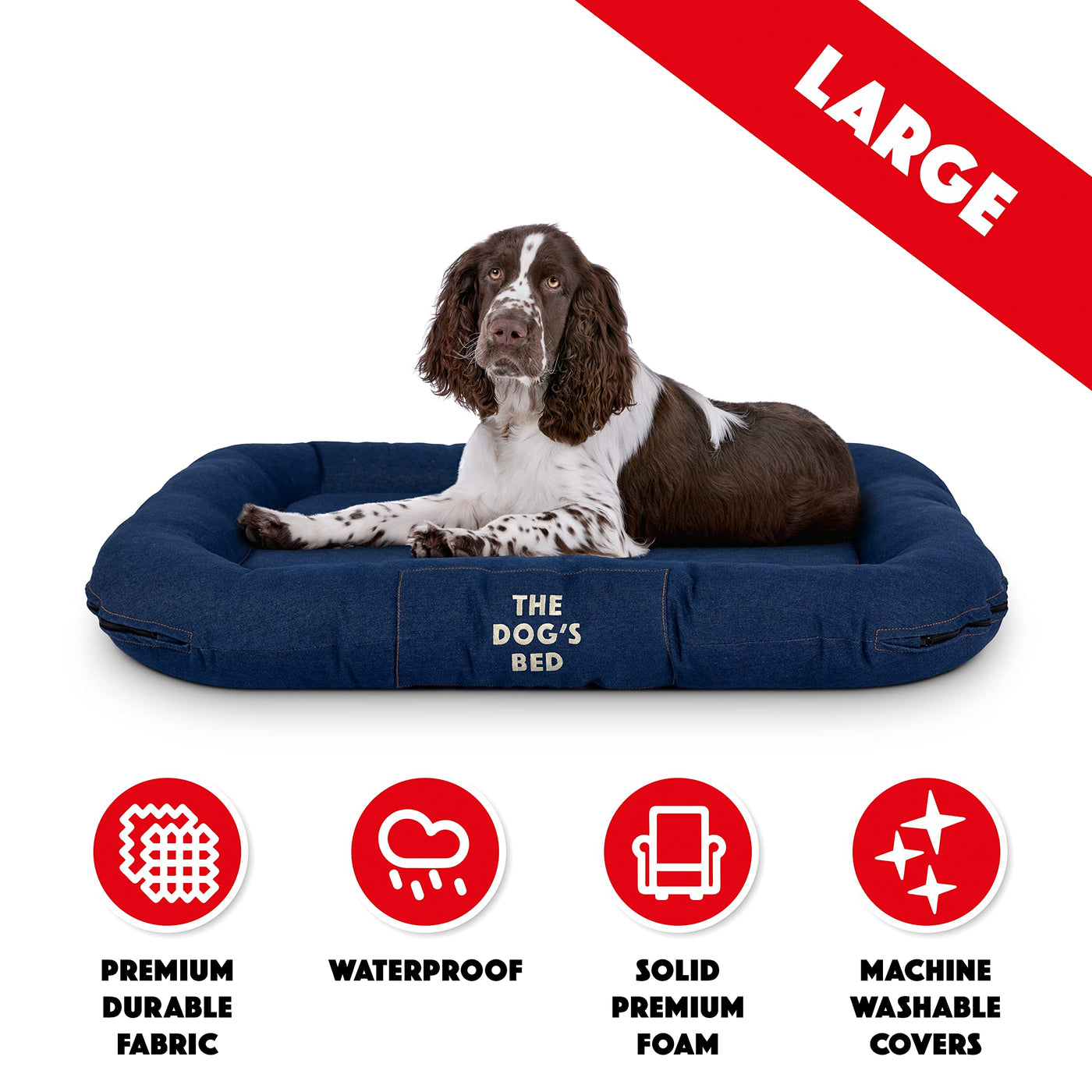 The Dog’S Bed Utility Waterproof Dog Bed, Large, Durable Blue Denim Fabric, Tough Ykk Zippers, Washable Reversible Cover, Dog Beds For Home Car Crate & Yard, Puppy & All Pet Comfort