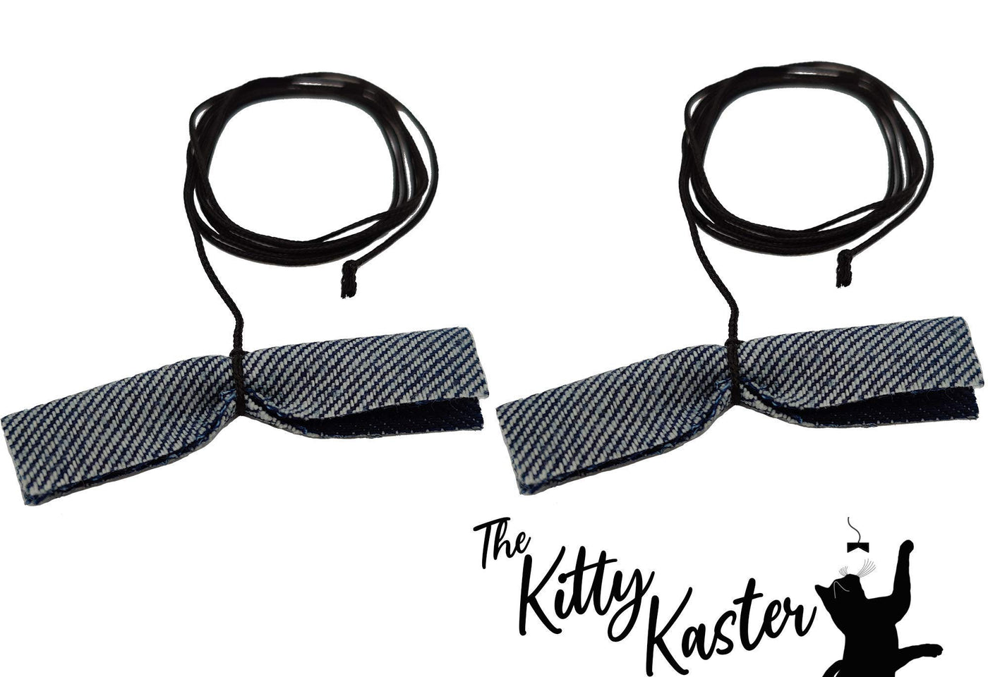 Sometimes Things Happen! Kitty Bit Through Your Kitty Kaster Line? Have They Already Shredded The Target With Their Razor Sharp Claws? Maybe You Just Want To Have An Extra Or Two In Case? Replacement Double Pack String And Pack For Your Kitty Kaster Wand Toy! (You Will Receive 2 Replacements) Made From 100% Soft Supple Braided Dacron And High Quality Thick Denim That Can Withstand Kitty Claws And Teeth For Many Plays! Just Tie A Simple Knot On The End Of Your Toy And You'Re Ready To Play Soft Safe Toy. No Metal Hooks Or Connectors Just Hand Tied Knots! (Safe For Kitty'S Teeth And Claws!) Non-Toxic Dacron Is Safe If Small Amounts Are Digested And Merely Passes Through Kitty Or Is Thrown Up Like A Hairball If Accidently Eaten (But Never Let Kitty Eat Any Kind Of String On Purpose, It Is Not Good For Them And Can Cause Stomach Issues If A Large Single Piece Is Eaten!)