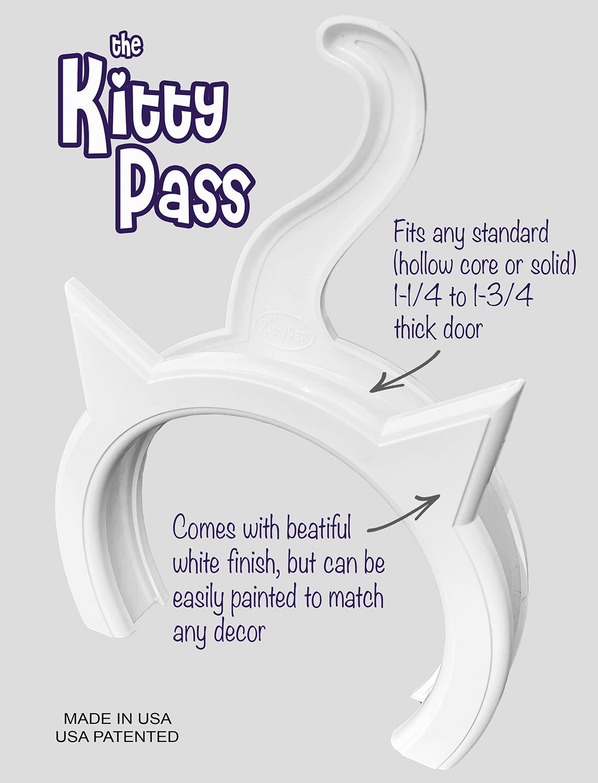 Don'T Let Your Cats Litter Box Take Over Your Home, With The Kitty Pass You Can Safely Put Your Cats Litter Box Behind Closed Doors, While Allowing Them Access To It Any Time They Need. The Kitty Pass Is Designed To Fit All Standard Door Sizes From 1 1/4'' To 1 3/4'' Thick. It Also Comes Already Finished, But Can Easily Be Painted To Match Your Homes Decor. Easy Install Takes About 15-25 Minutes. Comes Complete With Install Directions And A Template For Cutting The Door Perfectly. The Kitty Pass Is Manufactured And Assembled Right Here In The United States. Made In Usa - Patent Pending*