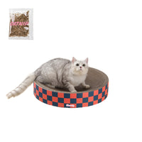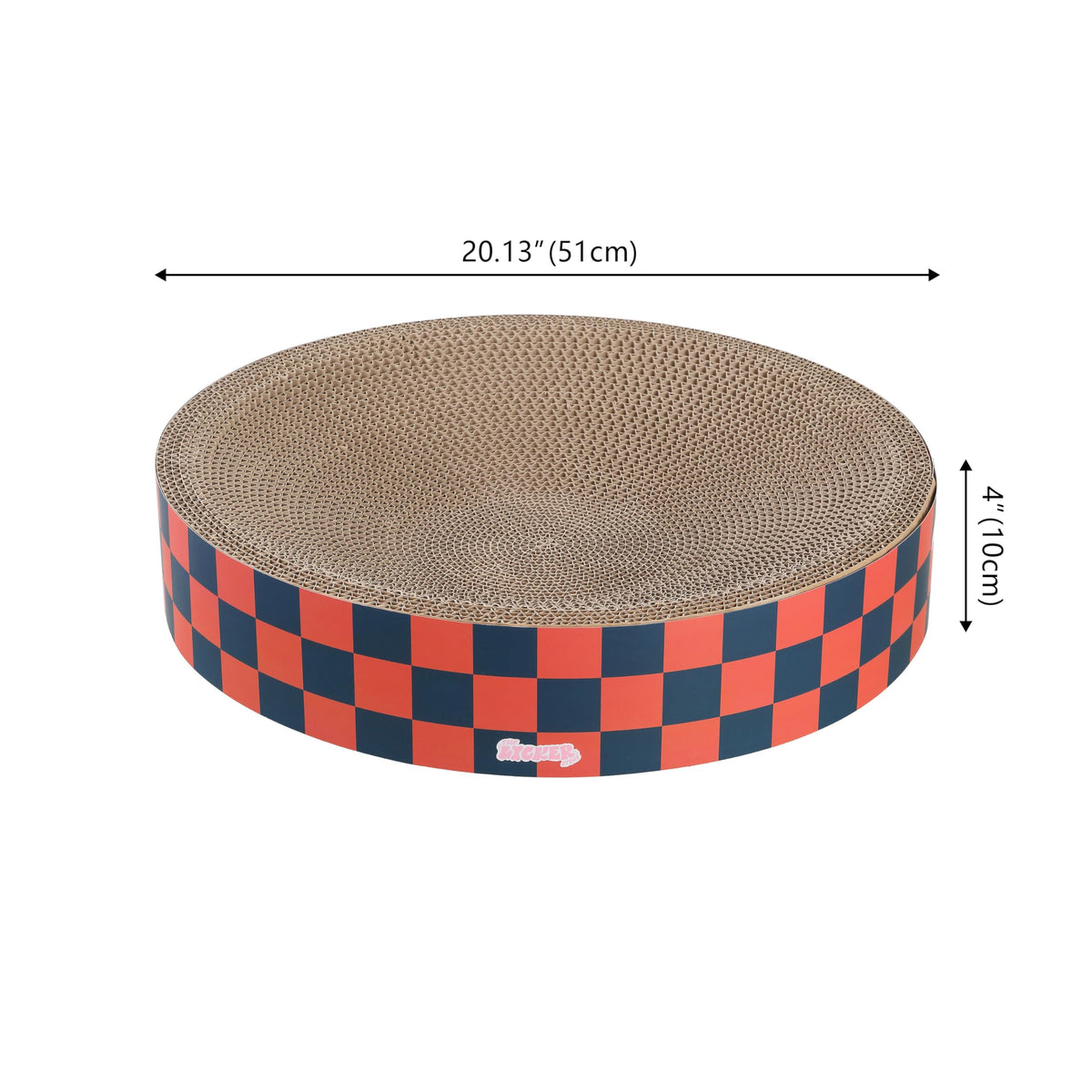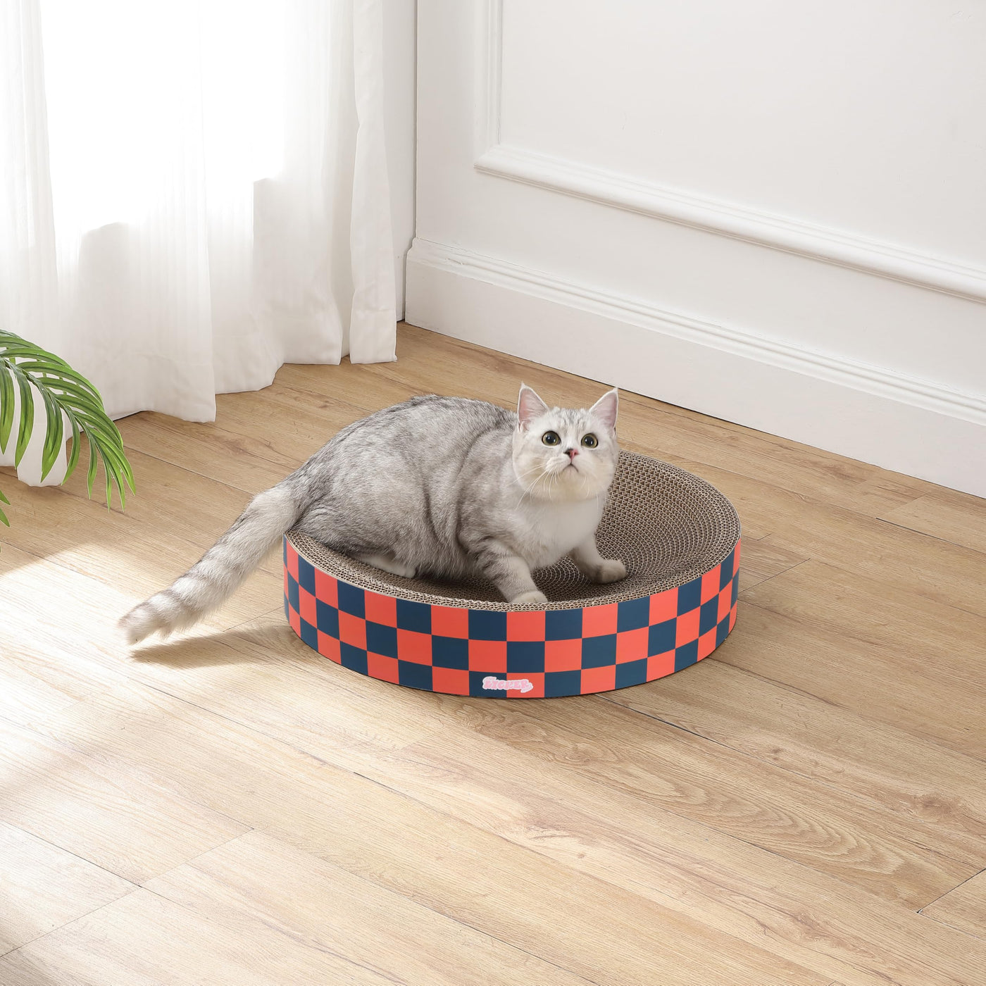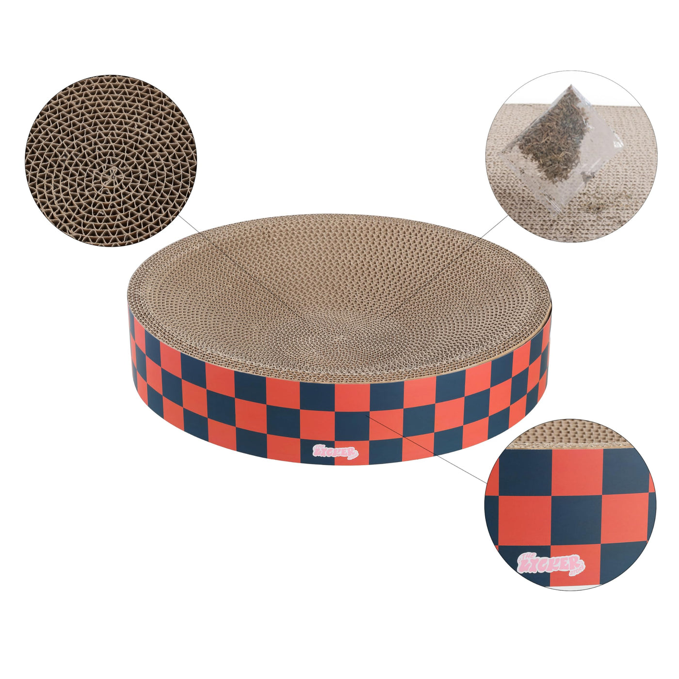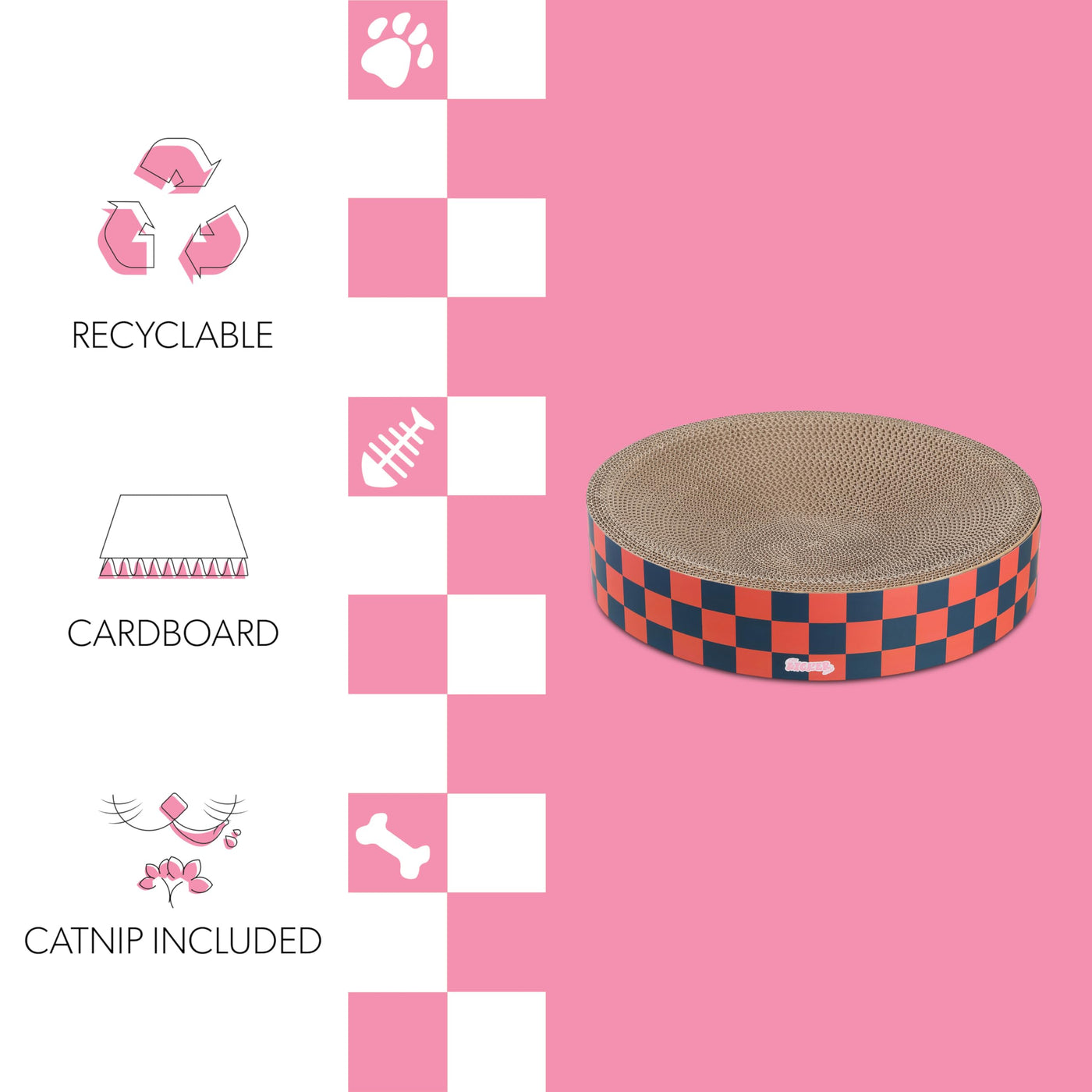 Modern And Cozy Cat-Scratcher Bowls Are Perfect For Active Scratching And Relaxed Snuggling. This Has A Corrugated Cardboard Interior And A Checkered Design Around The Outside. The Round Shape Is Perfect For Cats That Don'T Like A Soft Bed.