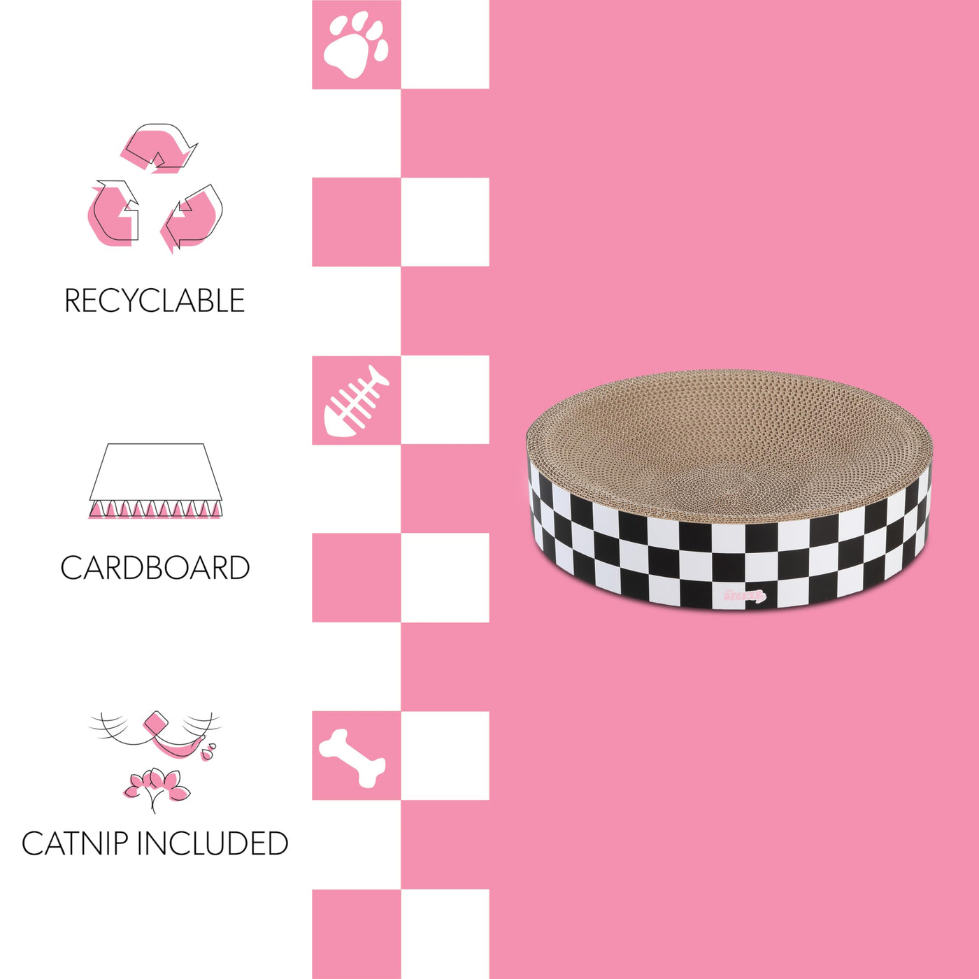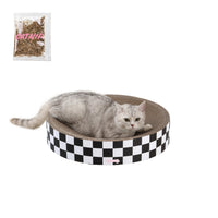 Modern And Cozy Cat-Scratcher Bowls Are Perfect For Active Scratching And Relaxed Snuggling. This Has A Corrugated Cardboard Interior And A Checkered Design Around The Outside. The Round Shape Is Perfect For Cats That Don'T Like A Soft Bed.