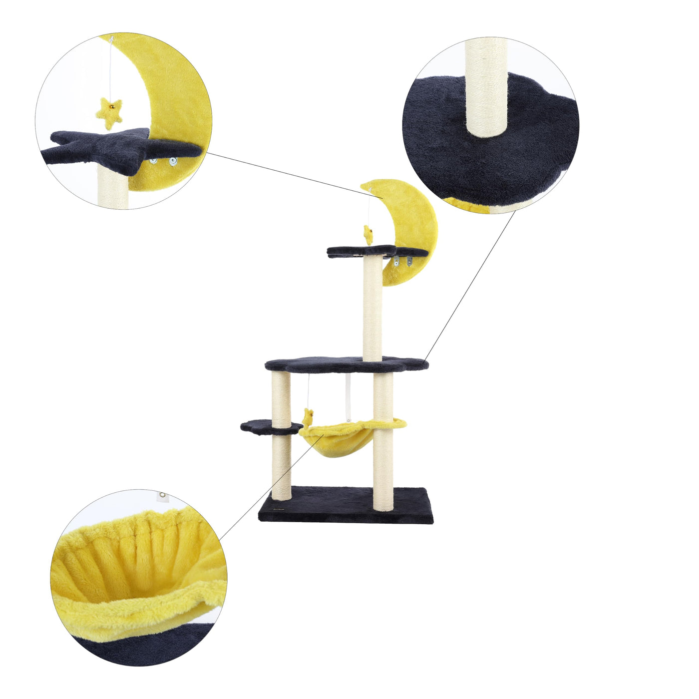 The Licker Store Ctr1003A Aurora 49'' 3-Tier Modern Sisal Moon And Stars Cat Tree With Scratching Posts, Basket, And Fuzzy Bell