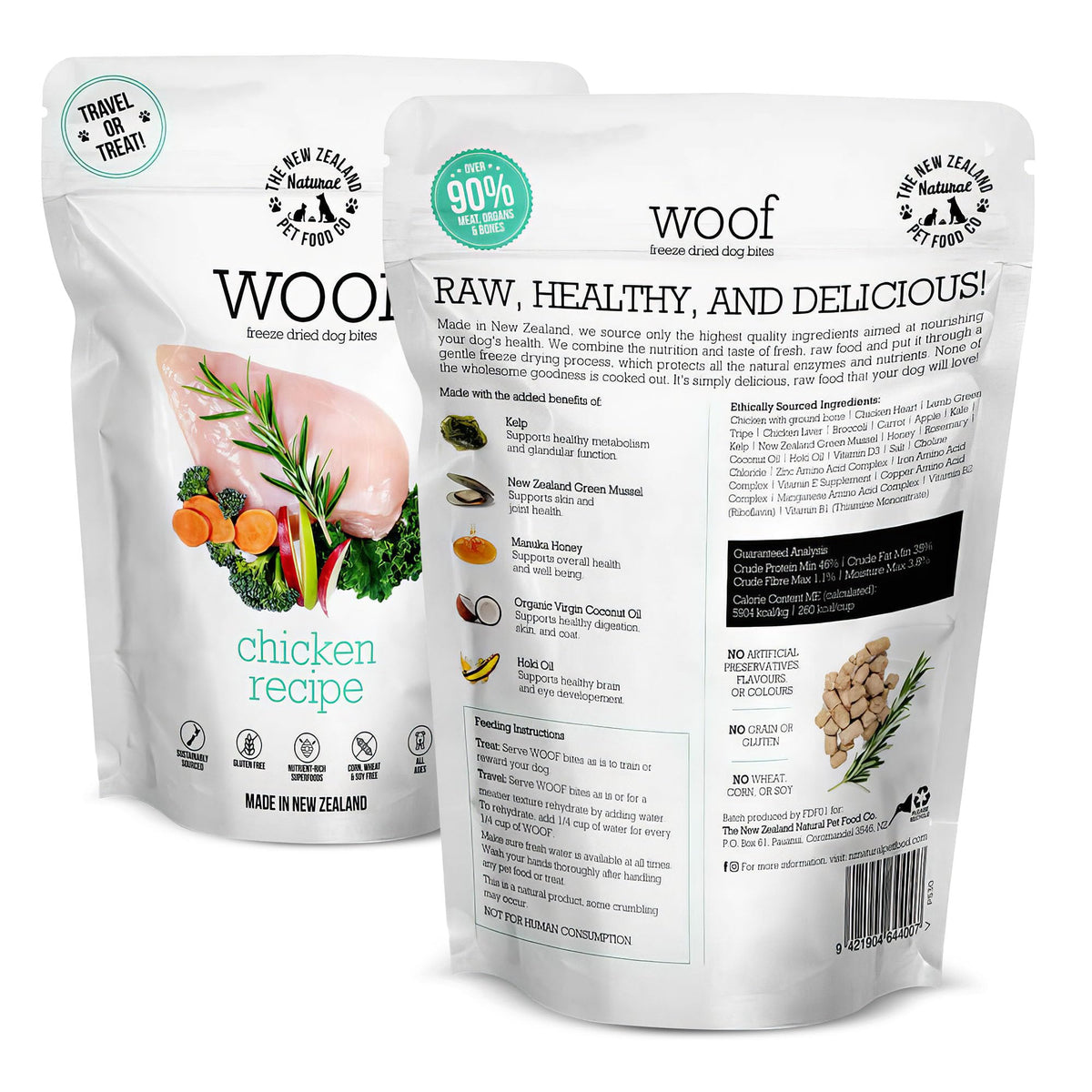The New Zealand Natural Pet Food Co. Woof Freeze Dried Dog Food - Chicken Recipe, High Protein, Dog Food Topper & Dog Treats, Al