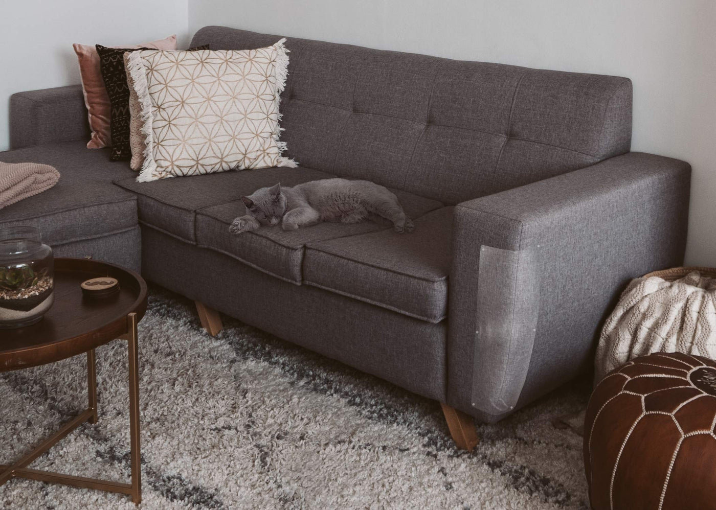 Q: Are the Cat Scratch Shields safe for all types of furniture?A: The Cat Scratch Shields are specifically designed for upholstered furniture. They should not be used on leather or natural fabrics, as the installation method may not be suitable for those materials.