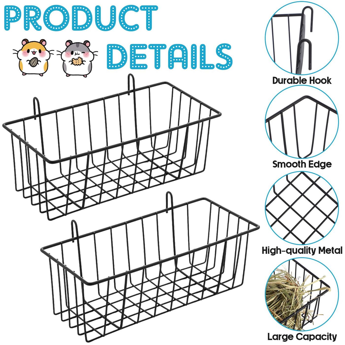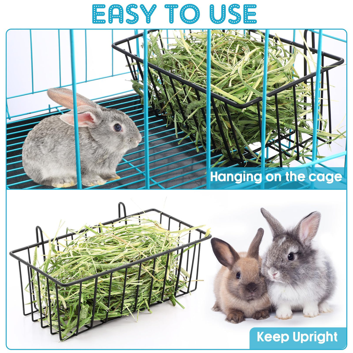 Therwen 4 Pcs Rabbit Hay Feeder Heavy Duty Metal Rabbit Hay Rack with Hooks Cage Hanging Hay Holder for Chinchilla Bunny Guinea