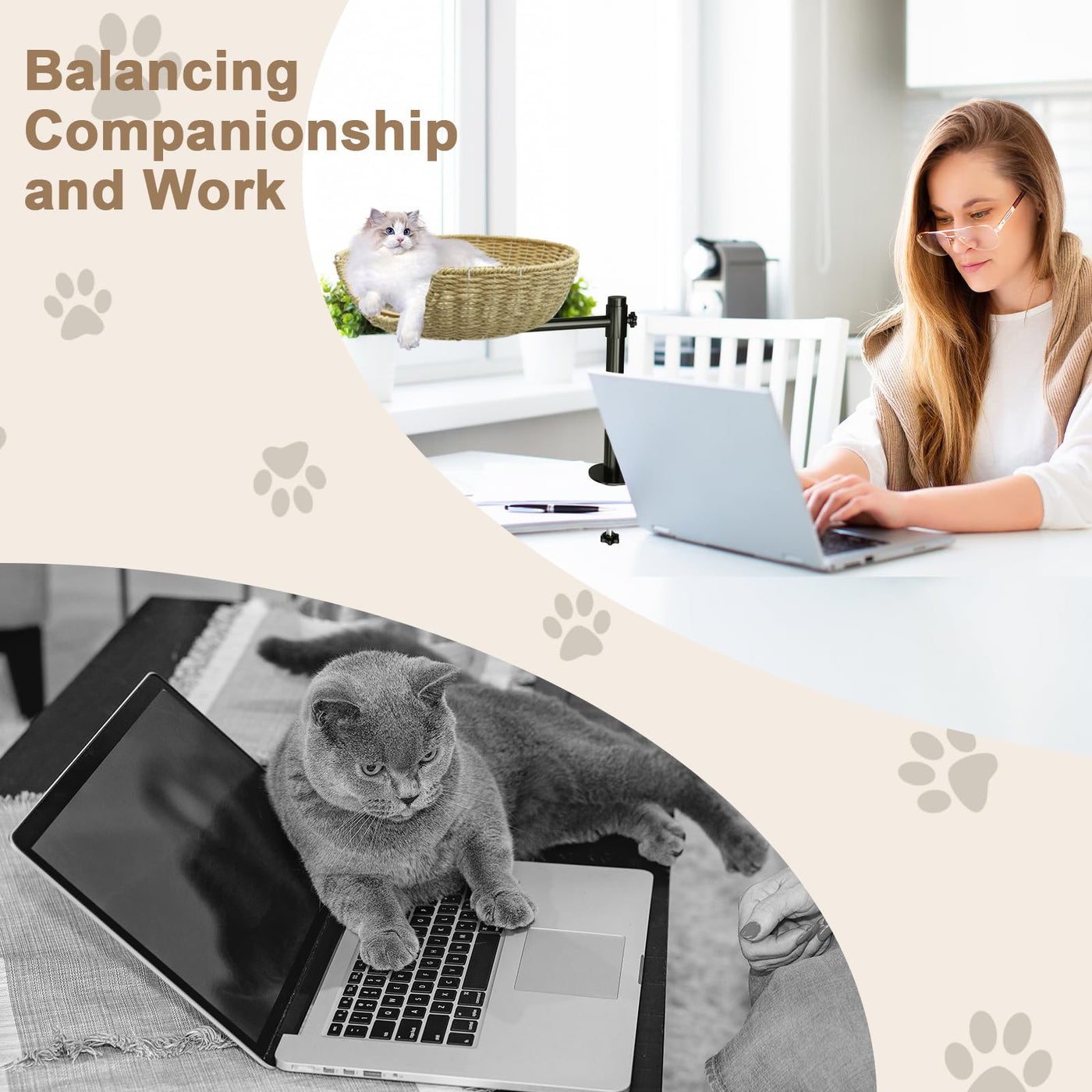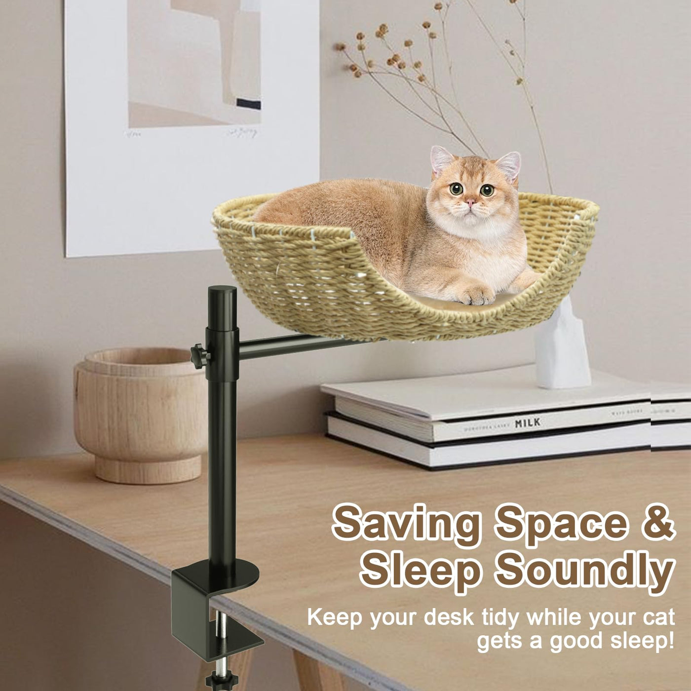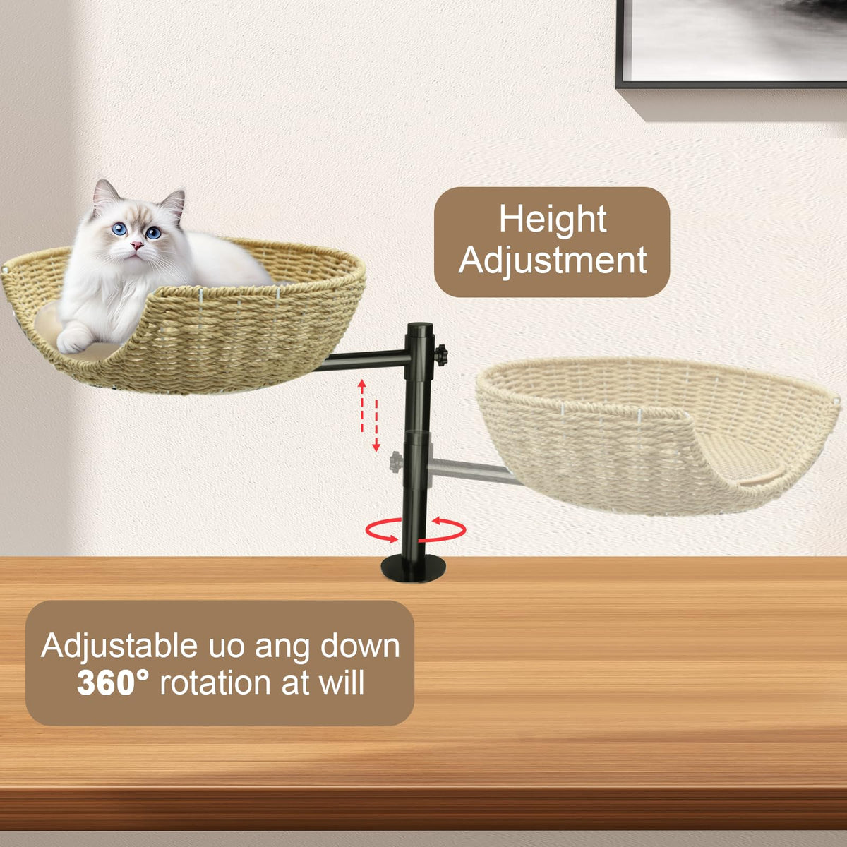 Theyfirst Handmade Cat Desk Bed For Indoor Cats, 360 Rotation Cat Bed Desk With Adjustable Mount, Pet Table Bed For Small Spaces