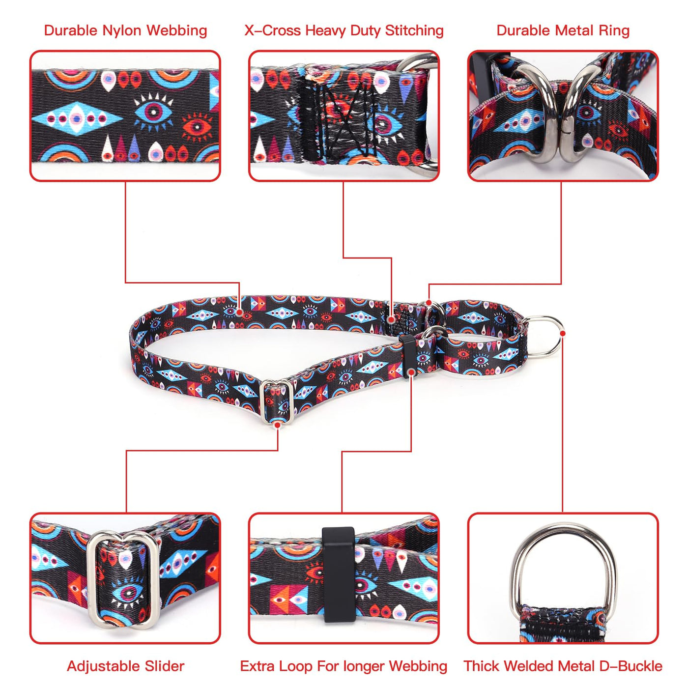Martingale Collar For Dogs, No-Slip Escape Proof Choke No Pull Cinch Soft Nylon Dog Training Collars Adjustable For Small Medium Large Breed Pet Dogs Size Note--Different Brand Collars Have A Little Different. Before Buying, Please Measure Your Pet Neck. S For Neck 10-15.7''26-40Cm) Width 4/5''(2Cm) ,M For Neck 14-19.7''(36-50Cm) Width 1''(2.5Cm), L For Neck 15.7-23.6''(40-60Cm) Width 1''(2.5Cm).Soft Nylon Material--The Martingale Dog Collar Is Made Of Quality Nylon. Soft And Comfortable. Beautiful Pattern Make Your Dogs Is Cool When Walking Outdoor.Exquisite Pattern--Our Martingale Collar For Dogs Large Breed And Medium, Small. Personalize Your Pup With Rich, Fashionable Colors And Mirror Like Metal Hardware. The Classic Style Of This Collar Looks Cute On Both Boy And Girl Dogs. Our Unique Collars Will Give Your Pup Character. Comfortable And Durable--Our Dog Martingale Collar Soft Nylon Webbing Means Your Dog Will Stay Comfy. Adjustable So You Can Have The Perfect Fit. Colorfast Dye Means This Collar Won'T Fade Or Run When Wet. Dog Collar With Nickel Plated Steel Hardware For Superior Strength. Money Back Guarantee-- If You Are Unsatisfied With The Martingale Collar For Any Reason, Simply Return Your Product With A No-Questions-Asked Full Refund. You Do Not Need To Bear Any Risk Of Purchase.