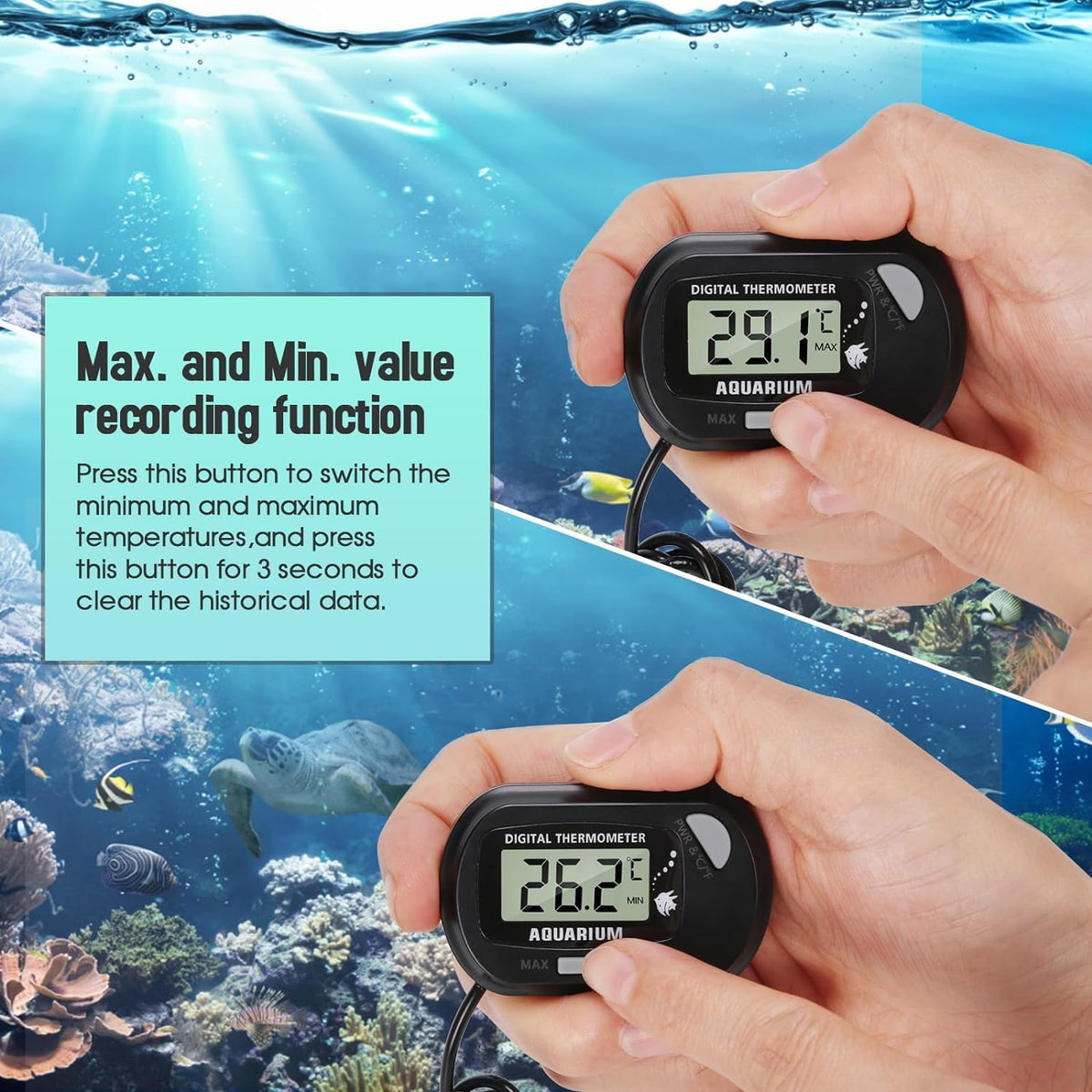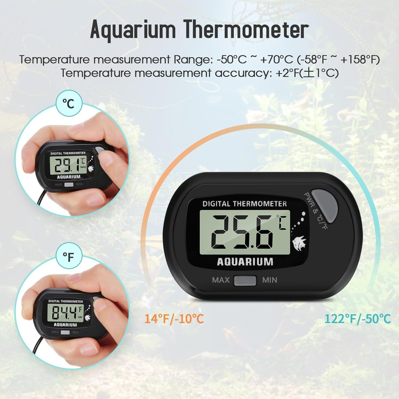 Thlevel Lcd Digital Aquarium Thermometer, Fish Tank Thermometer With Water-Resistant Sensor Probe And Suction Cup For Reptile, T