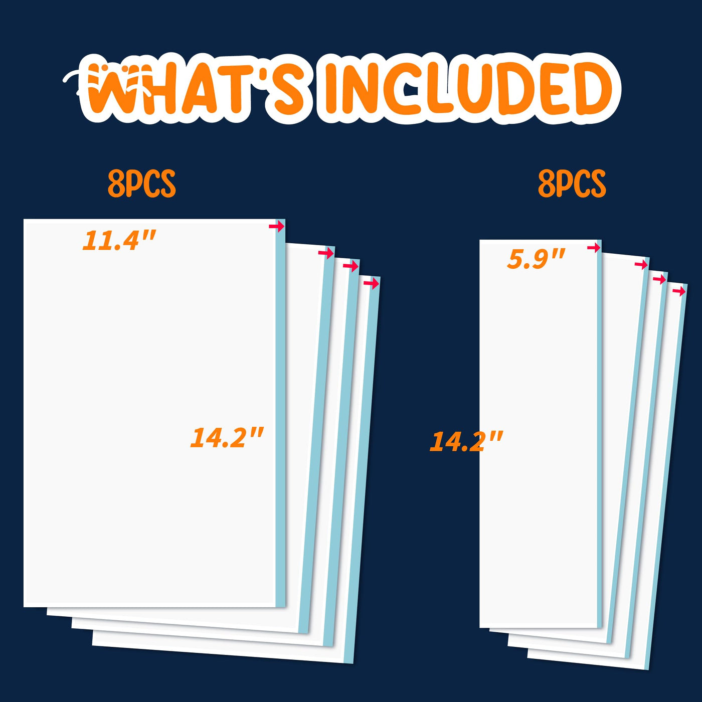 Q: What sizes are included in the 16-pack of cat scratch tape?A: The 16-pack includes two different sizes: eight pieces measuring 14.5 x 11.5 inches and eight pieces measuring 14.5 x 6 inches, providing flexibility for various furniture types.