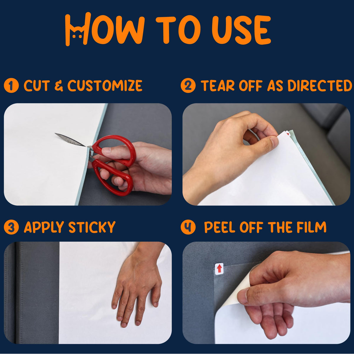 Really Easy to Install: Very easy to install in just 3 steps no complex steps nor tools need. 1:Peel off the self-adhesive pad 2: Stick to anywhere you want to apply this sofa anti scratching sticky tape (can bend around the contour of furniture) 3: You can also cut them to size you need as well