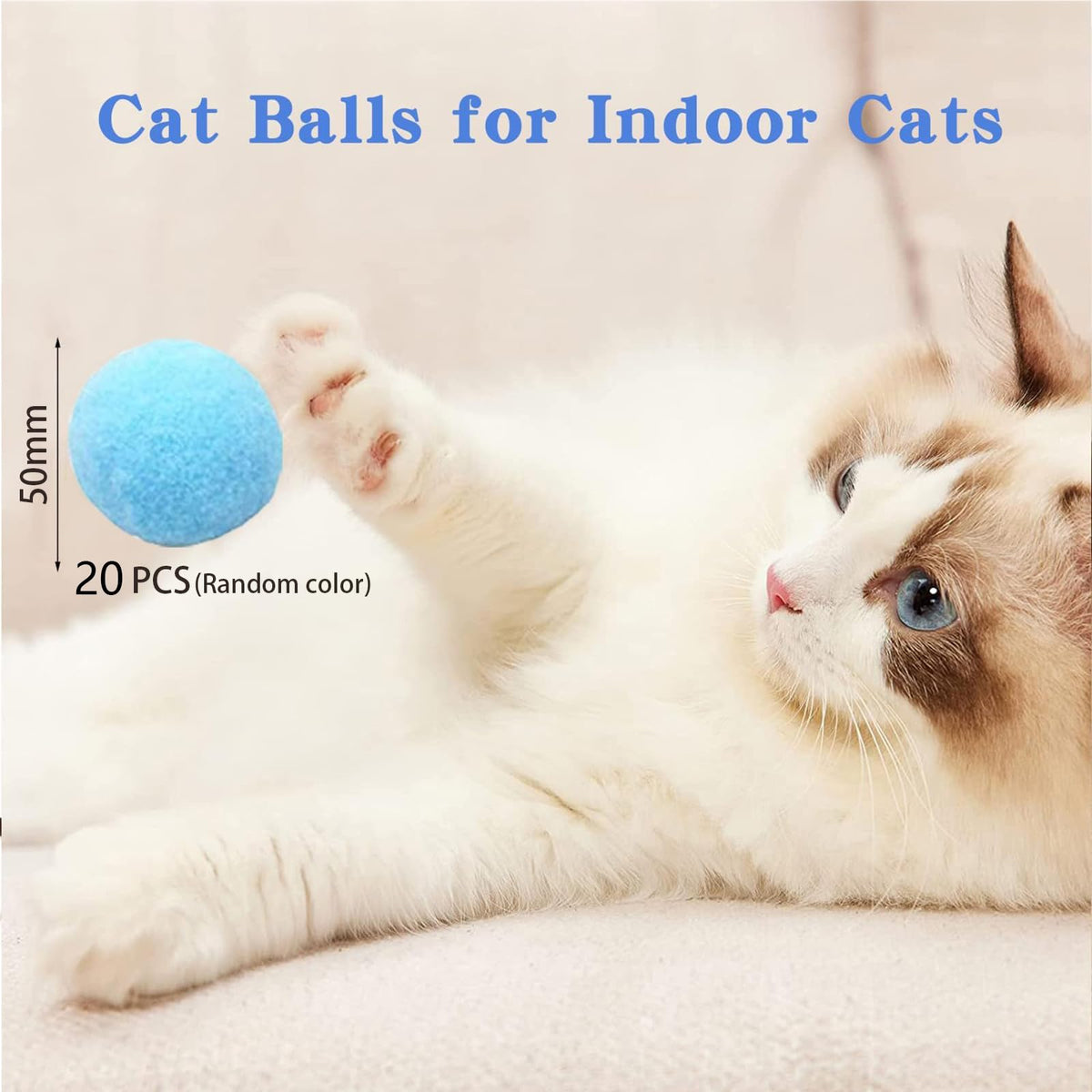 Thxutm Cat Toy Balls, 20Pcs Premium Soft Pom Pom Balls For Kittens, 1,9'' Funny Interactive Cat Pompom Toys For Bored Indoor Cat