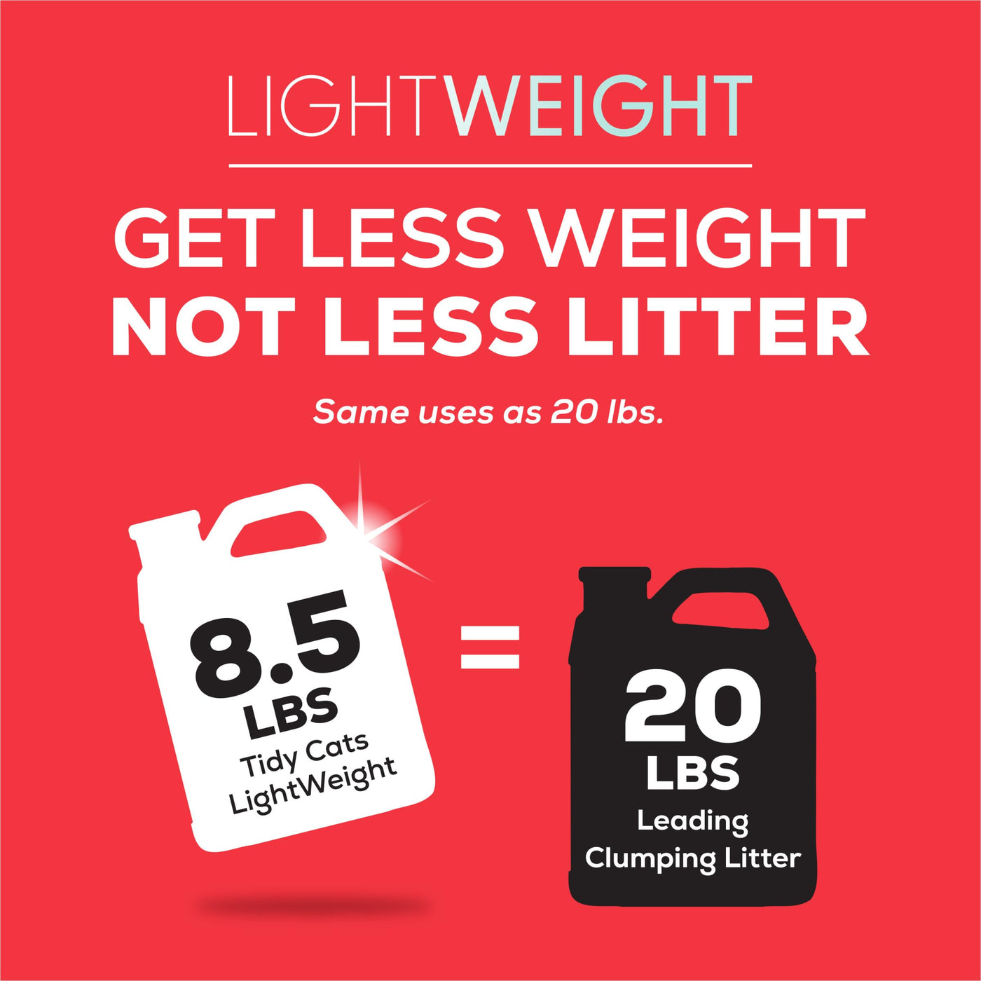 Q: What are the advantages of using lightweight cat litter?A: This lightweight cat litter is 50 percent lighter than leading clumping multi-cat litters, making it easier to carry, pour, and store without compromising on litter quality or clumping performance.