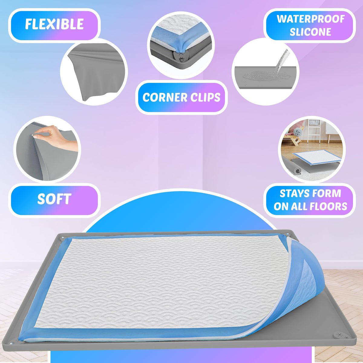 Tidyfriend Pee Pad Holder Tray 28 X 34 Inches, Silicone Dog Potty Tray, Easy To Clean No Spill Dog Potty Training Pad Holder (Li