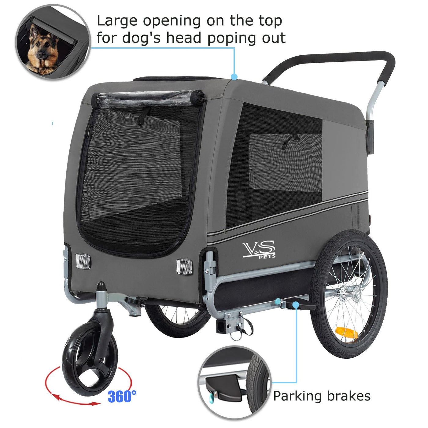 The Veelar Sports Pet Bicycle Trailer & Stroller Is A Great Way To Maintain An Active Lifestyle With Your Pet. If You Want To Get In A Bike Ride, But Your Pet Isnt Up To It, You Can Still Take Them Along. Veelar'S Design Features An Extra-Wide Wheelbase And A Lower Center-Of-Gravity To Provide Outstanding Ride Stability And Easier Access For Pets Getting In And Out Of The Cabin. The Front Door On The Trailer Includes A Zippered, Mesh Screen Layer Plus A Zippered, Clear Vinyl Layer To Block Wind And Weather. The Zipped Sunroof On The Top Provides Ample Airflow And Room For Pets To Peek Their Heads Out And Look Around. An Optional Washable Pet Mat (Sold Separately) Keeps Pets Comfortable On Long Rides Assembles Quickly And Folds Down For Easy Storage And Transport. No Pets Leave Behind!