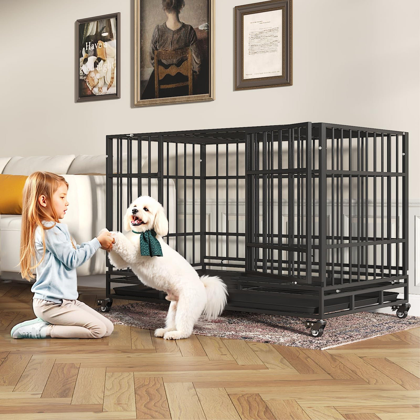 Timhaka Heavy Duty Indestructible Dog Crate Is Made Of Painted Galvanized Iron Tubing And Features Four 360-Degree Casters.The Removable Tray Provides Convenience For You To Clean The Dog Crate.The Top Door Of Heavy Duty Dog Cage Facilitates You To Train And Interact With Your Dog. The Front Door Is Convenient For Your Dog To Enter And Exit.For Your Pet'S Comfort, We Use Encrypted Steel Tubing On The Bottom.Are You Suffering From Your Furry Friend Destroying Your Home? This Durable Dog Kennel May Be A Perfect Solution.The Front Door Of Dog Kennel Is Equipped With Self-Locking Latch That Prevents Your Pet From Accidentally Escaping And Keeps Them Safe From Harm.Specifications:Size: 48 Inchescolor: Blackweight: 61.7 Lbs.Product Dimensions: 48.1''L X 29''W X 33.1''H.