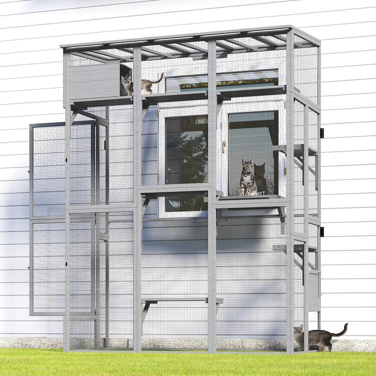 Timhaka Cat Catio, Window Catio For Multiple Indoor Cats With 4 Jump Platforms, Cat Window Perch For Playing, Sunbathing, Nappin