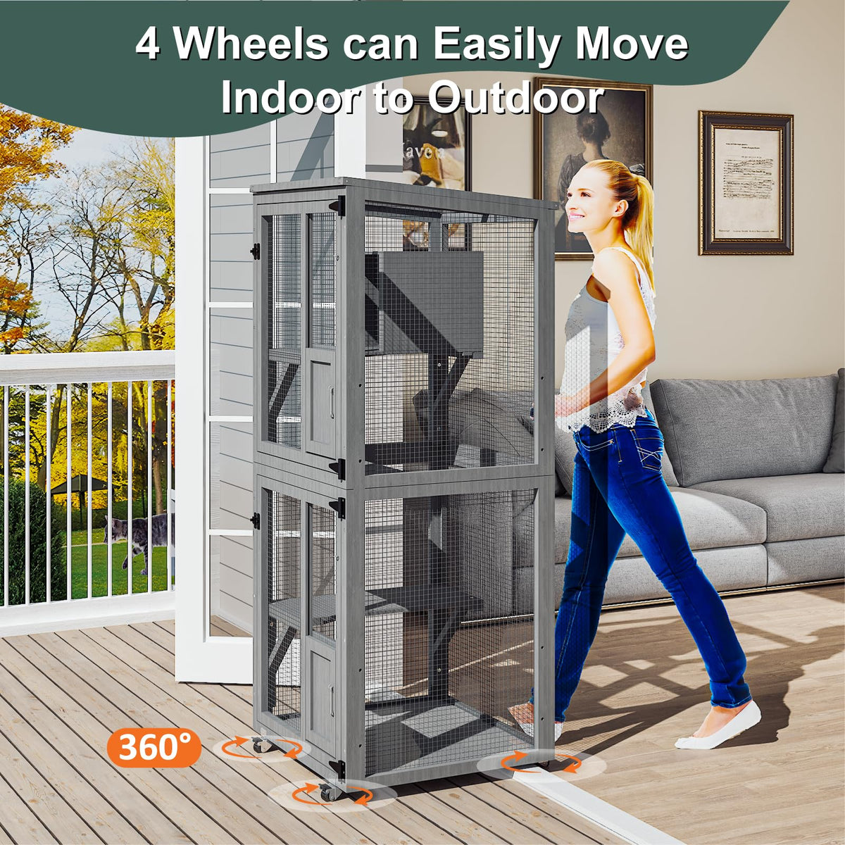 Timhaka Catio Outdoor Cat Enclosure, 4 Tier Indoor Catio With 4 Wheels, Platforms And Resting Box, Cat Cage With Waterproof Roof