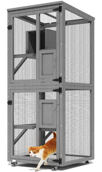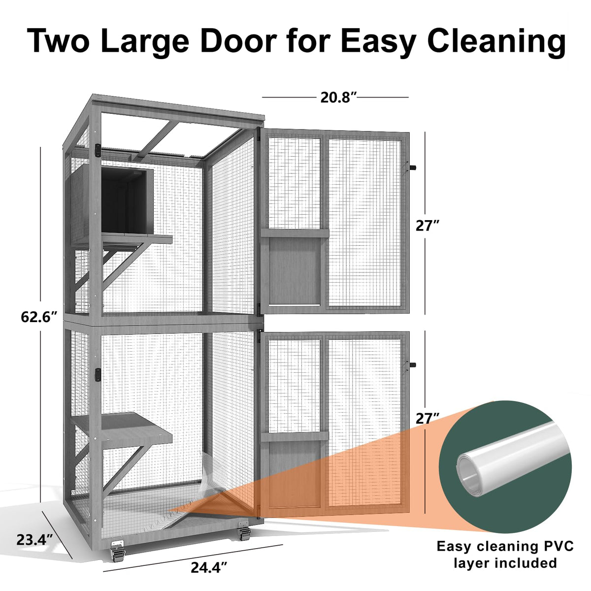 Timhaka Cat Catio The Outdoor Catio Is 24.4 X 23.4 X 62.6 Inches. With Ample Exercise And A Private Sleeping Area, It Is The Perfect Combination Of Safety And Freedom, Providing A Perfect House For Your Cat. The Indoor Catio Has A Rustic Appearance And Spacious Structure The Portable Catio Is Constructed Of Premium Water-Based Fir Wood And Bite-Friendly Galvanized Wire Mesh, Allowing For Easy Observation Of Your Cat'S Activities Inside Inside The Window Catio, Your Cat Will Have Plenty Of Room To Play And Relax. There Are Four Platforms For Your Cat To Climb And Jump On, Providing Endless Entertainment. Additionally, There Is A Cozy Sleeping Area Where Your Cat Can Rest And Recharge We Understand That Your Cat Is An Important Member Of Your Family, And We'Ve Designed This Cage With Their Comfort And Happiness In Mind Whether You'Re Working From Home Or Simply Need Some Time To Yourself, This Cat Enclosure Is The Perfect Solution For Keeping Your Cat Safe And Entertained