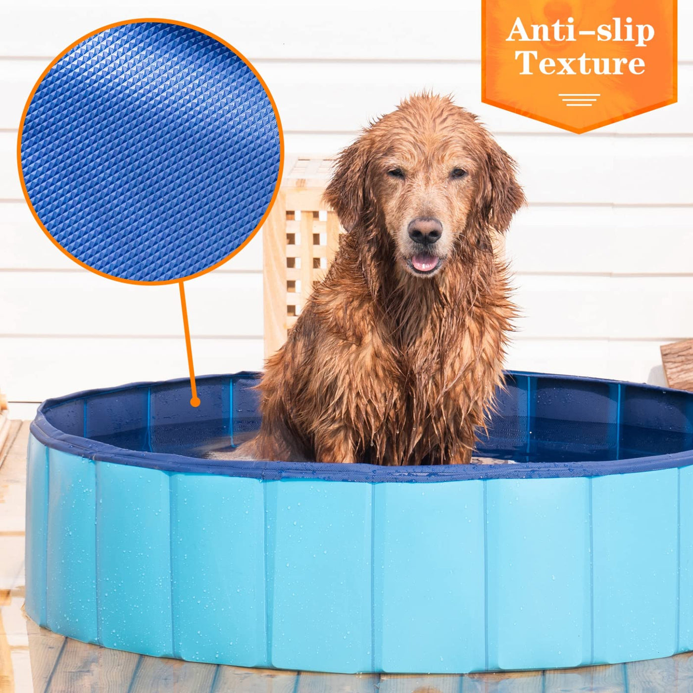 Q: How does the anti-slip feature work on this dog pool?A: The bottom of the Timoo dog pool is treated with an anti-slip texture, which provides excellent grip in both dry and wet conditions. This feature enhances the safety of your pets as they walk and play in the pool.