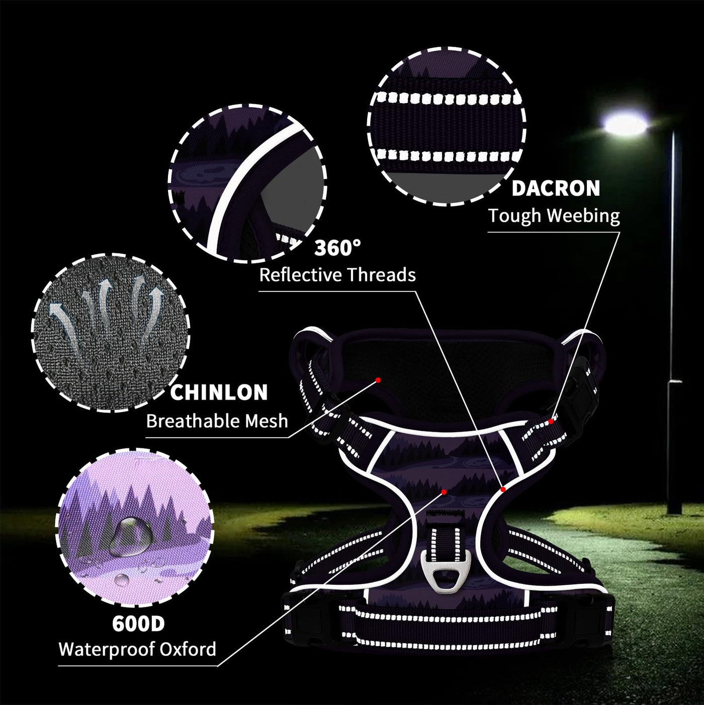 Timos Dog Harness,No-Pull Pet Harness Adjustable Soft Padded Dog Vest,Reflective No-Choke Pet Oxford Vest With Easy Control Hand