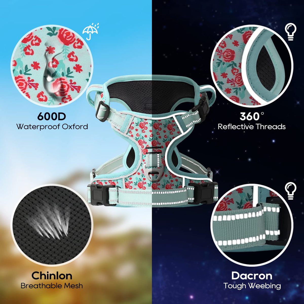 Timos No Pull Dog Harness, Release At Neck Reflective 3 Snap Buckles Adjustable No Choke Pet Vest With Front & Back 2 Leash Clip