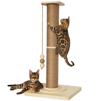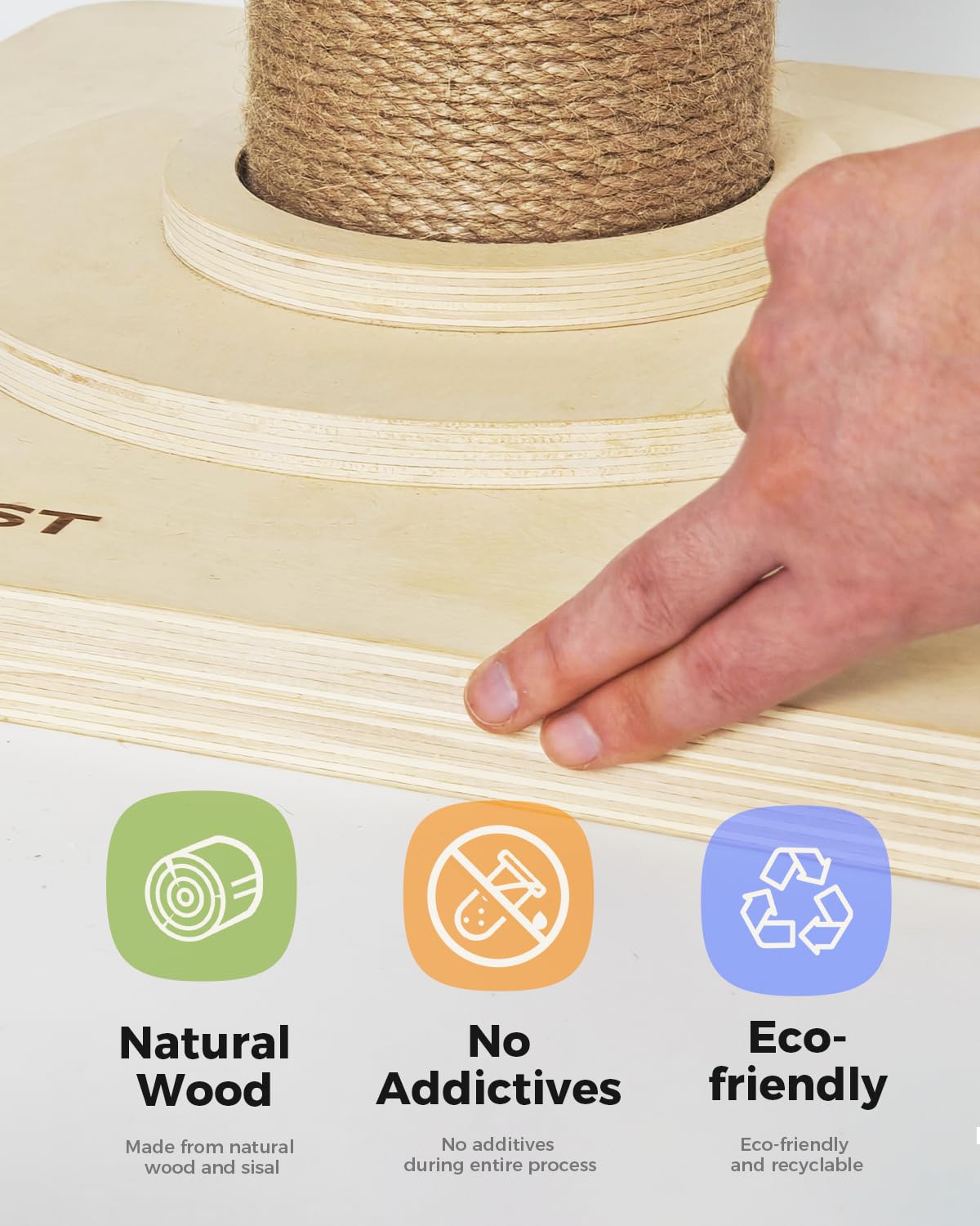 Tinybeast Wooden Cat Scratching Post, Sturdy 35'' Tall Natural Sisal Cat Scratcher With Thick Solid Wood Base For Adult Cats Ind