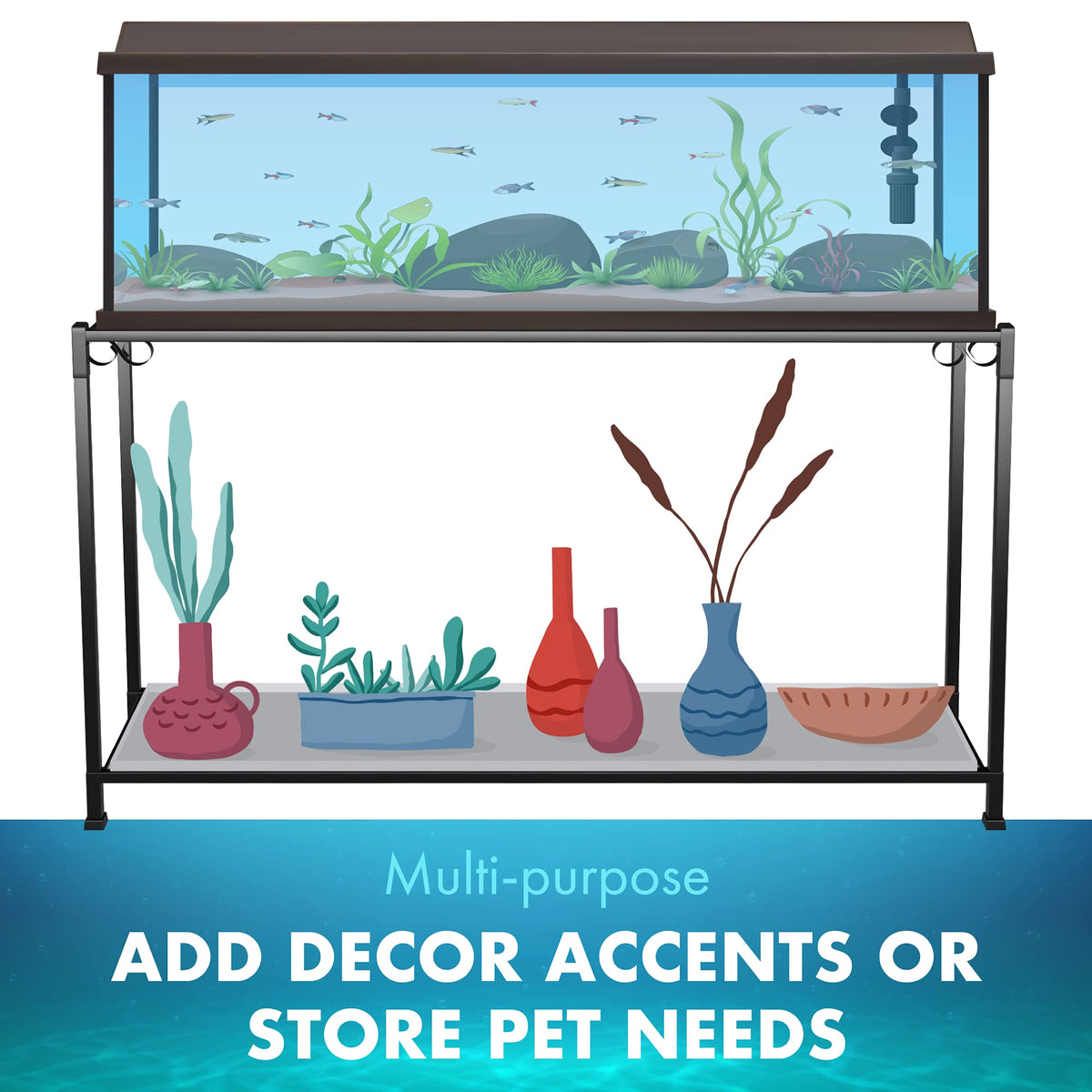 The TitanEzeDouble Aquarium Stand is a great way to share your love for your pet with all who enter your home, office, or classroom. The double shelfone upper and one lowercan house two separate pet homes, terrariums, orfishtanks. Some of our customers have used the top shelf for their bird cages and the bottom shelf for small animals. Great for parakeet, parrot, cockatiel, finch, conure, canary, and parrotlet birdhouses or habitats. Also works for rabbits, hamsters, amphibians, and other critters. There are many ways to use this modern, fundamental, deluxe, combo shelf petfurniture accessory. CaitecBird Toys has been leading the way in pet product innovation by offering pet owners a wide range of high-quality, affordable pet products for more than two decades, by focusing on product design, value, and a quality product line.