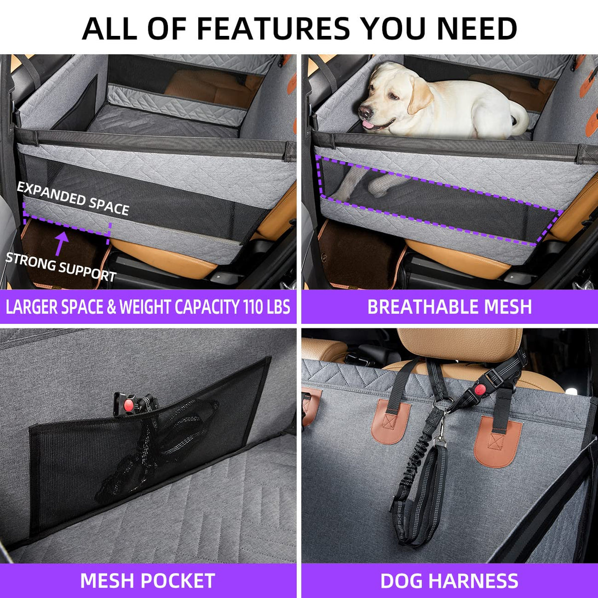 TKYZ Large Dog Car Seat,Back Seat Extender for Dogs,Waterproof Medium Dog Seat Cover for Backseat, Pet Bed for Car Hammock(Grey-