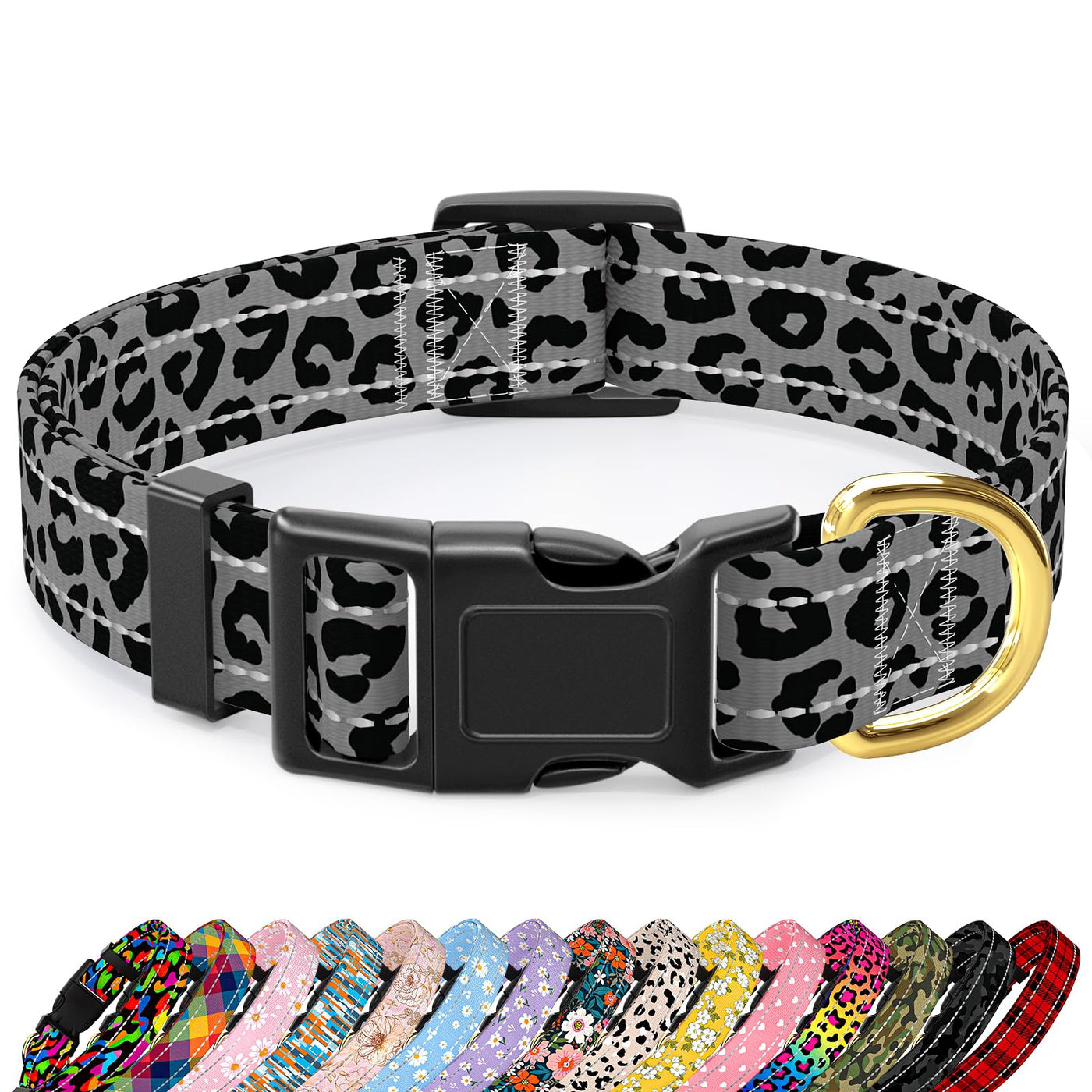 Tmoodel Reflective Dog Collar For Small Dogs Cats, Cute Leopard Style Adjustable Heavy-Duty Nylon Puppy Collar For Boy And Girl