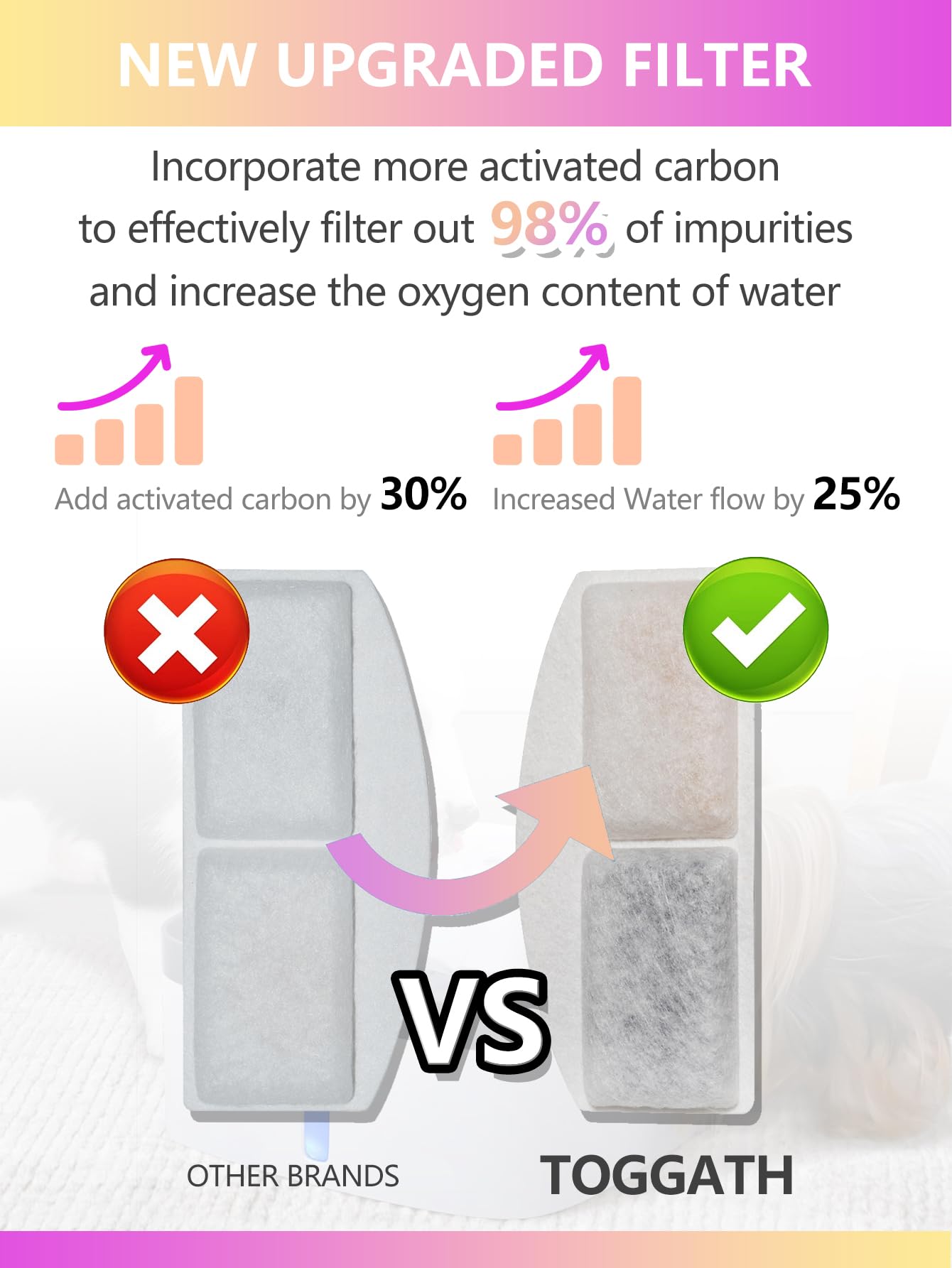 Q: Is the TOGGATH Cat Water Fountain Filter easy to install?A: Yes, the TOGGATH Cat Water Fountain Filter is designed for easy installation, with each filter coming in individual packaging for convenient use and storage.