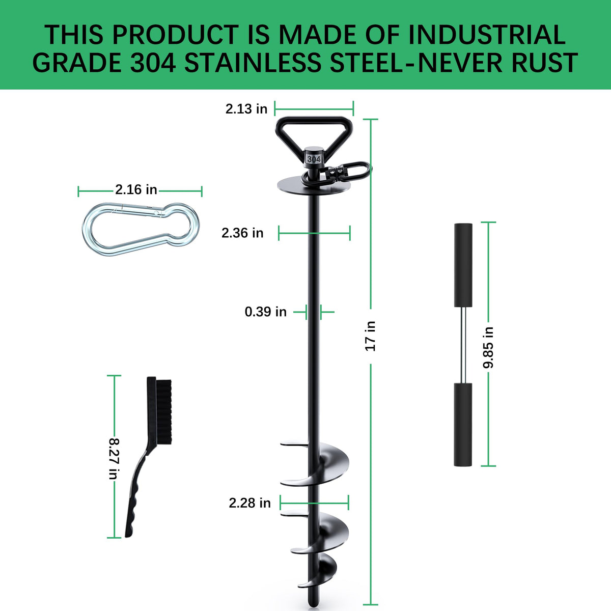 You Will Receive-1 Heavy-Duty Screw In Anchor,1 Stainless Steel Rod With Soft Handle,1 Manual,1 Stainless Steel Hook And Loop, And 1 * Cleaning Brush.It Is Truly The Perfect Camping Belt Accessory For Dogs,Very Portable, And You Can Bring A Safe And Reassuring Gift To Pet Owners.