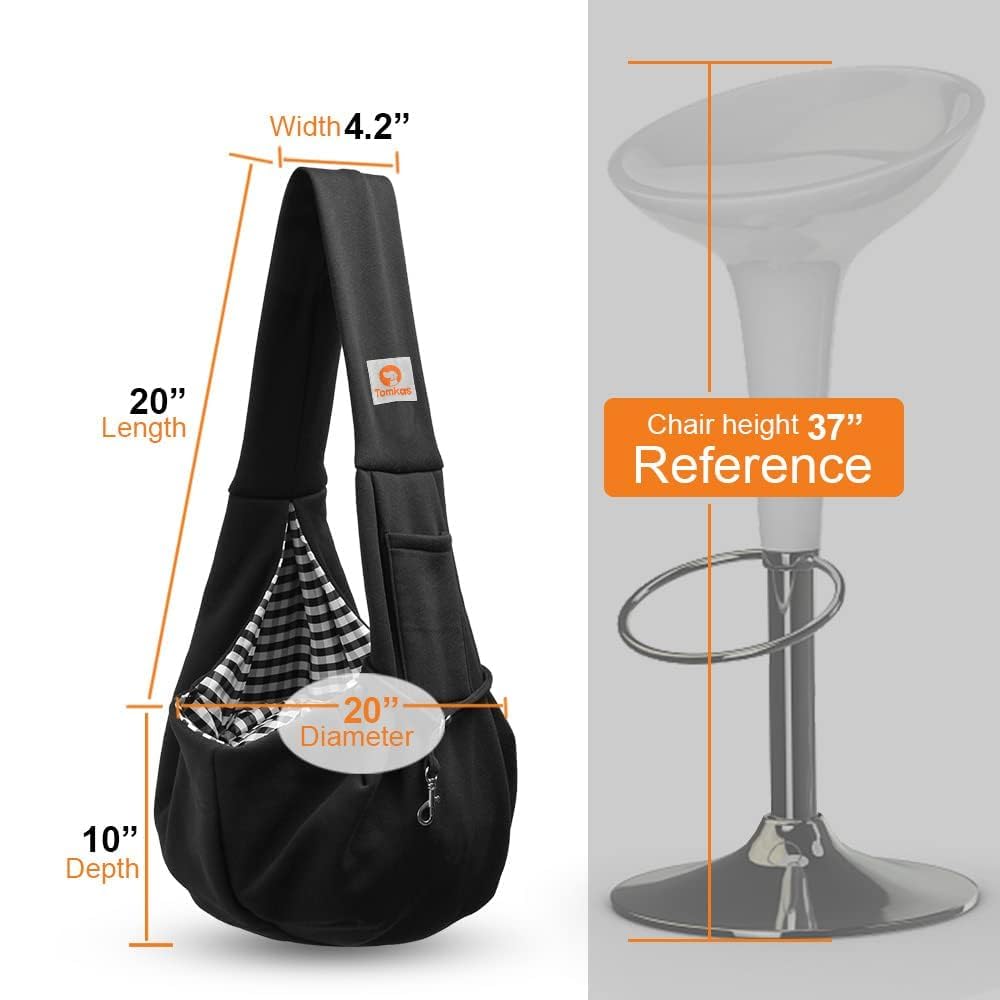 Tomkas Small Dog Sling Carrier - Classic Strap & Classic Pocket - For 3-10 Lbs Pets(Black)